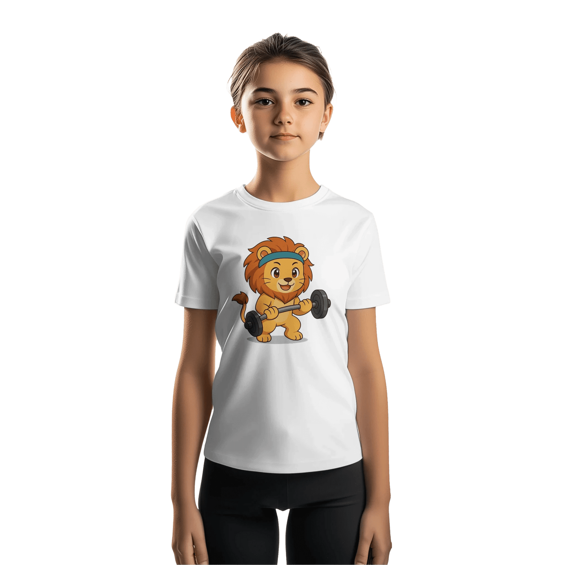 The cartoon lion graphic on this t-shirt adds a fun and playful touch to your child's wardrobe. The bright colors and eye-catching design will make your little one feel confident and stylish while they work out or play. Whether they're lifting weights or running around, this t-shirt is sure to keep them looking cool and feeling great.
