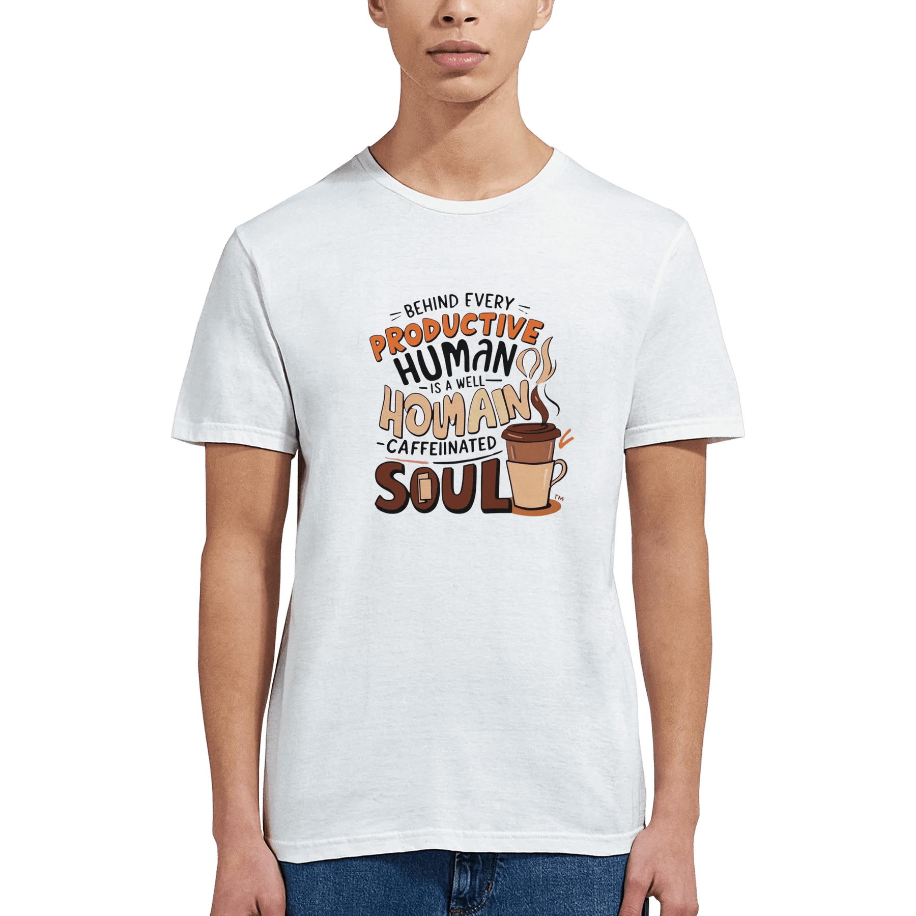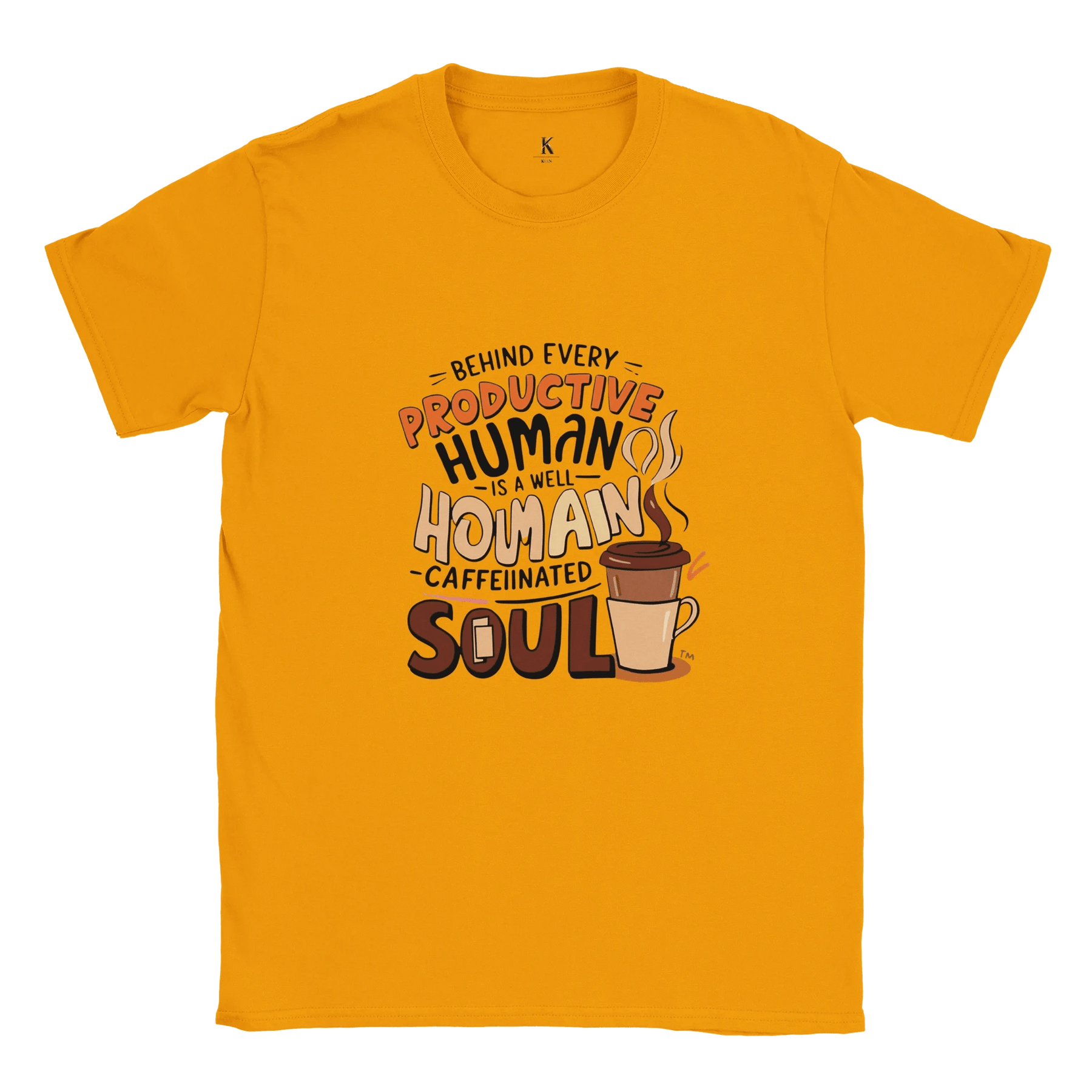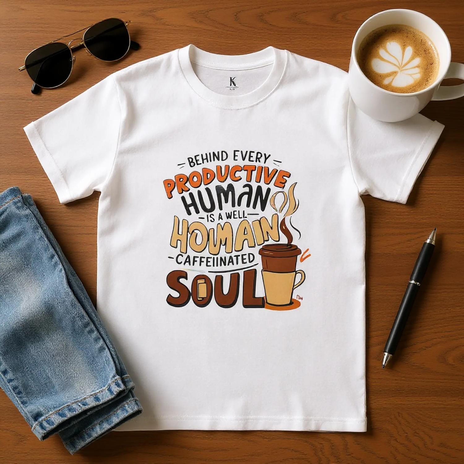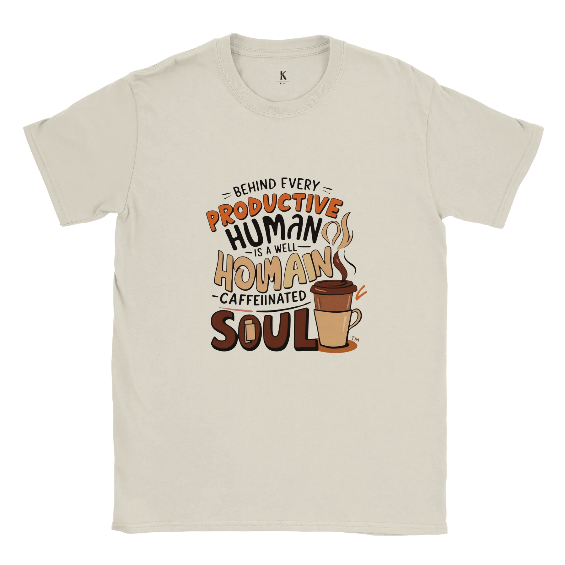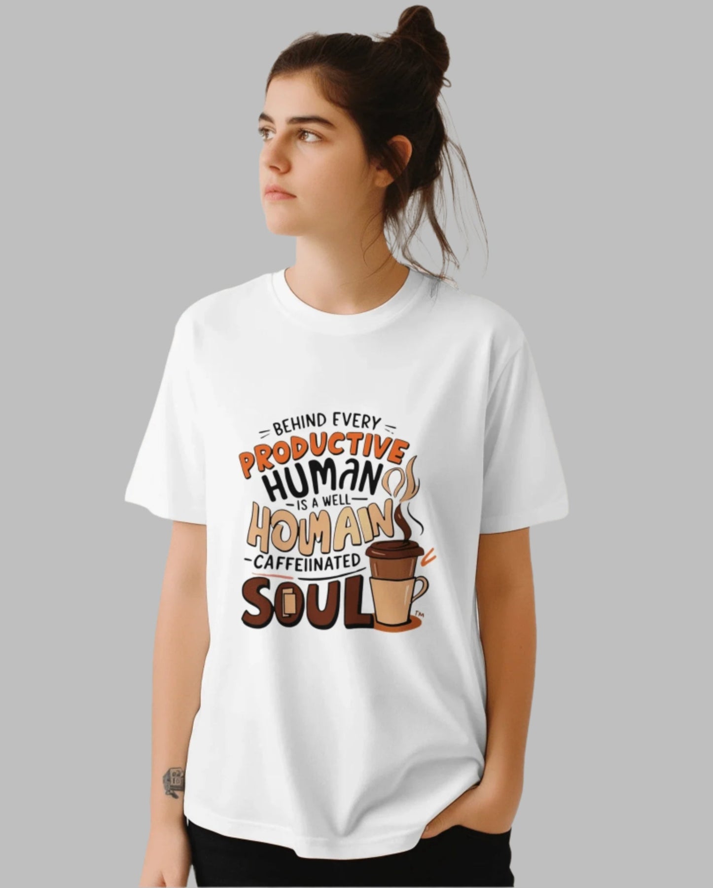Start your day with comfort, style, and a smile! Our “Well-Caffeinated Soul” T-shirt is the perfect way to show the world that behind every productive human is a steaming cup of coffee.
