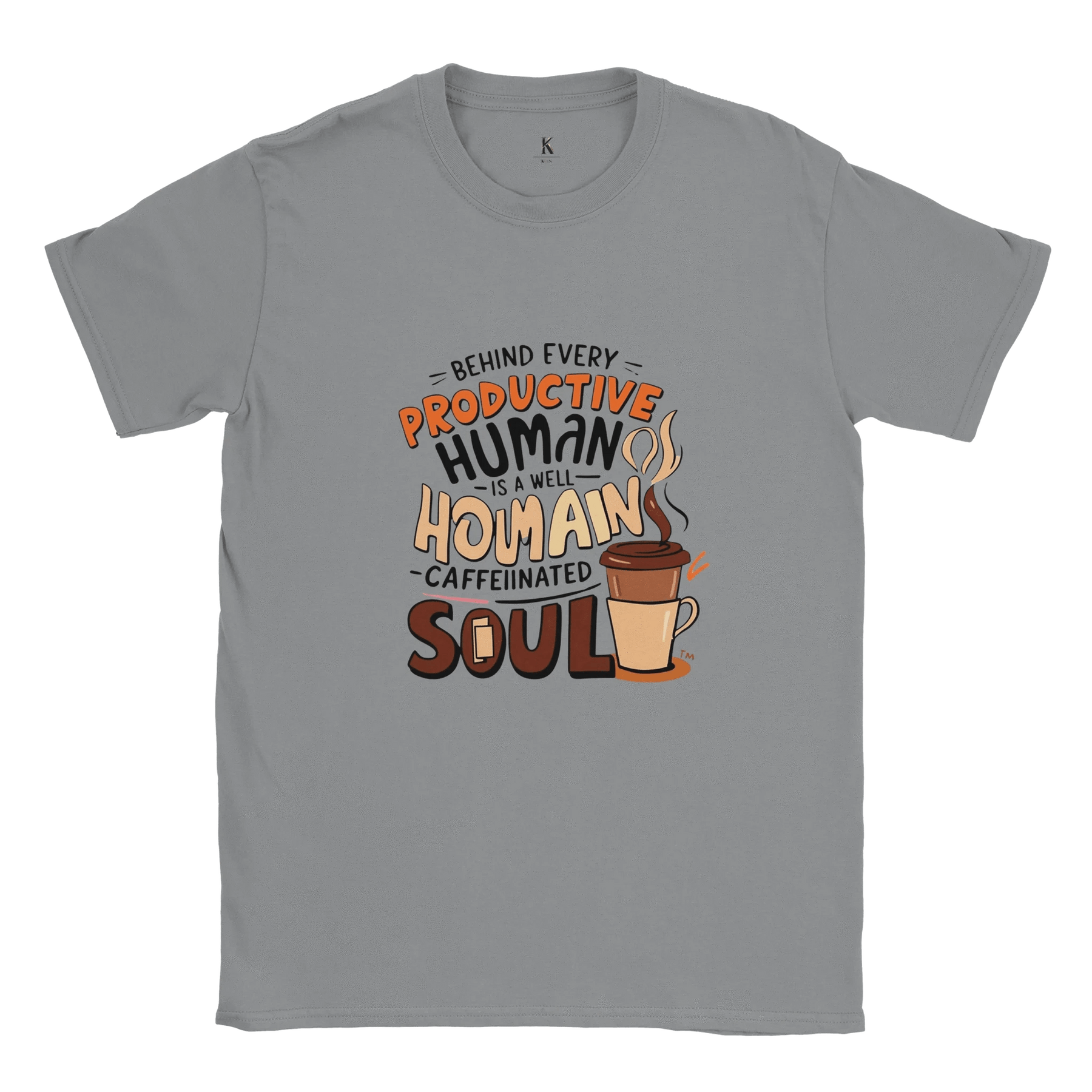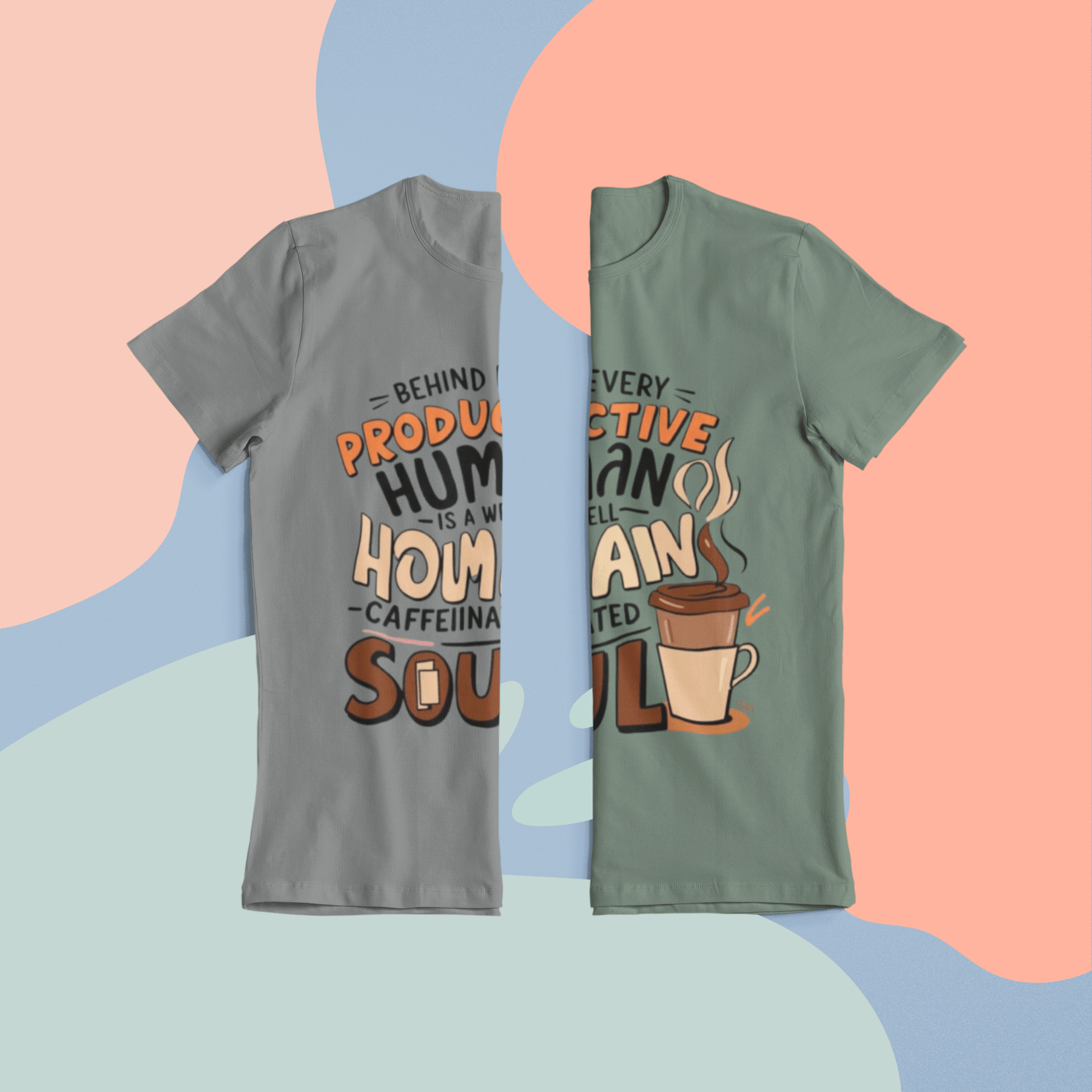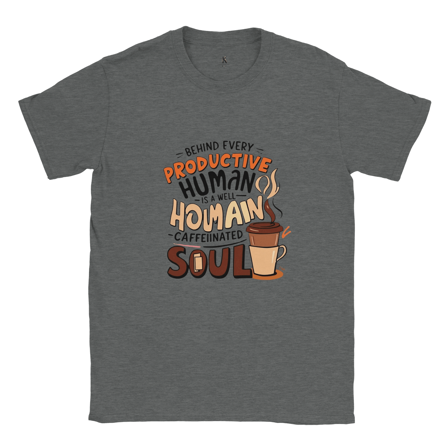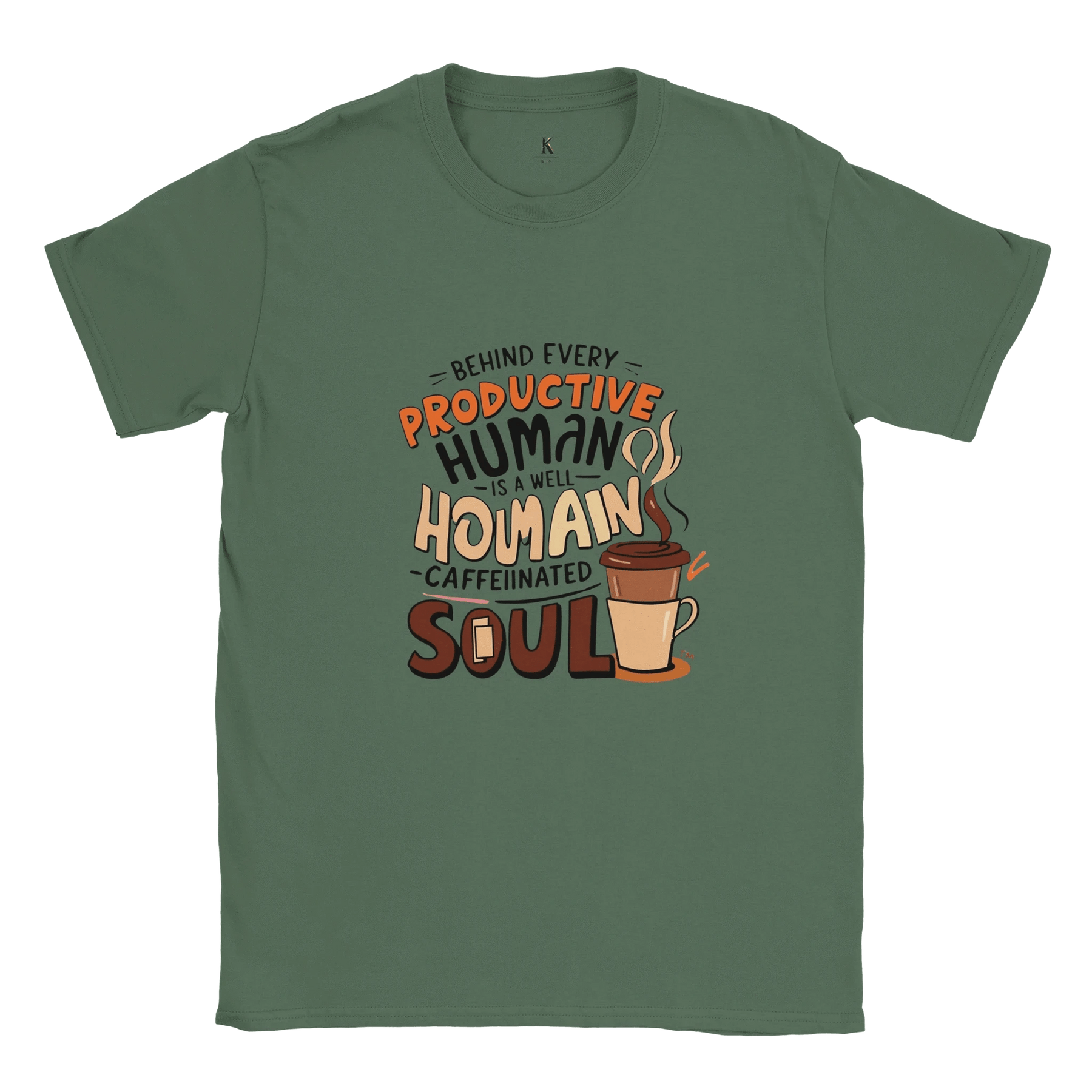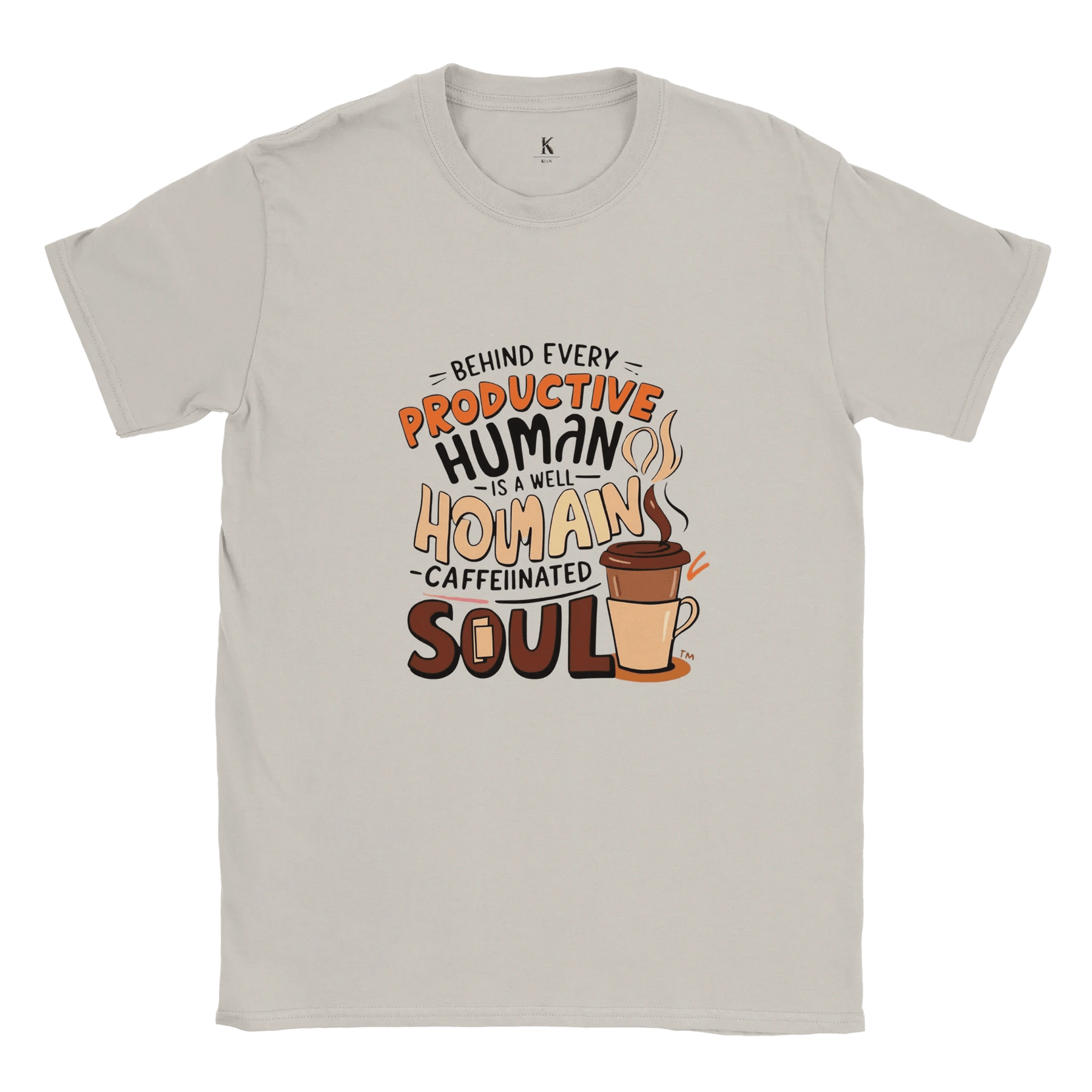 Start your day with comfort, style, and a smile! Our “Well-Caffeinated Soul” T-shirt is the perfect way to show the world that behind every productive human is a steaming cup of coffee.