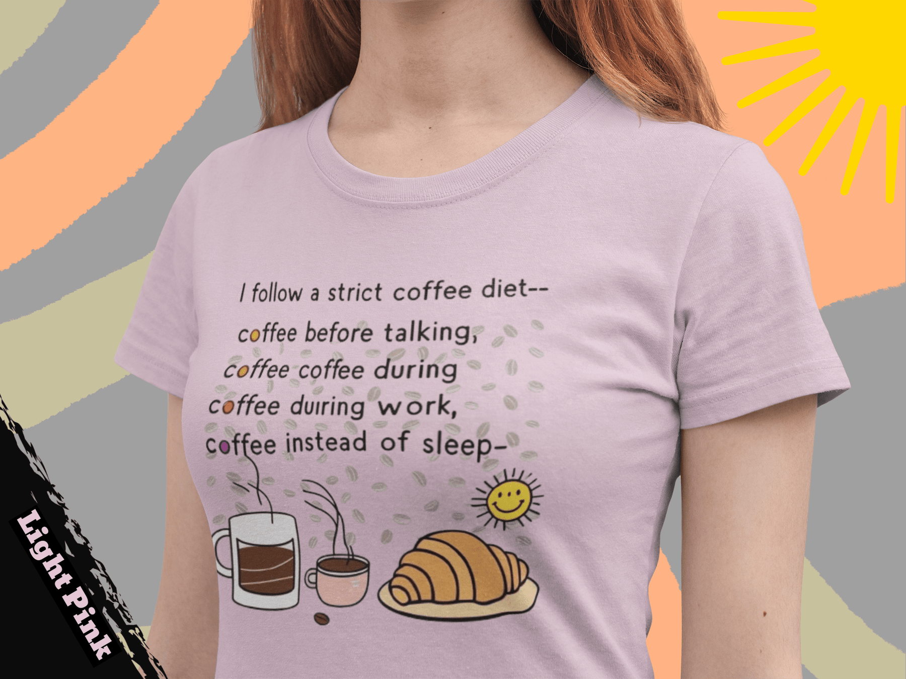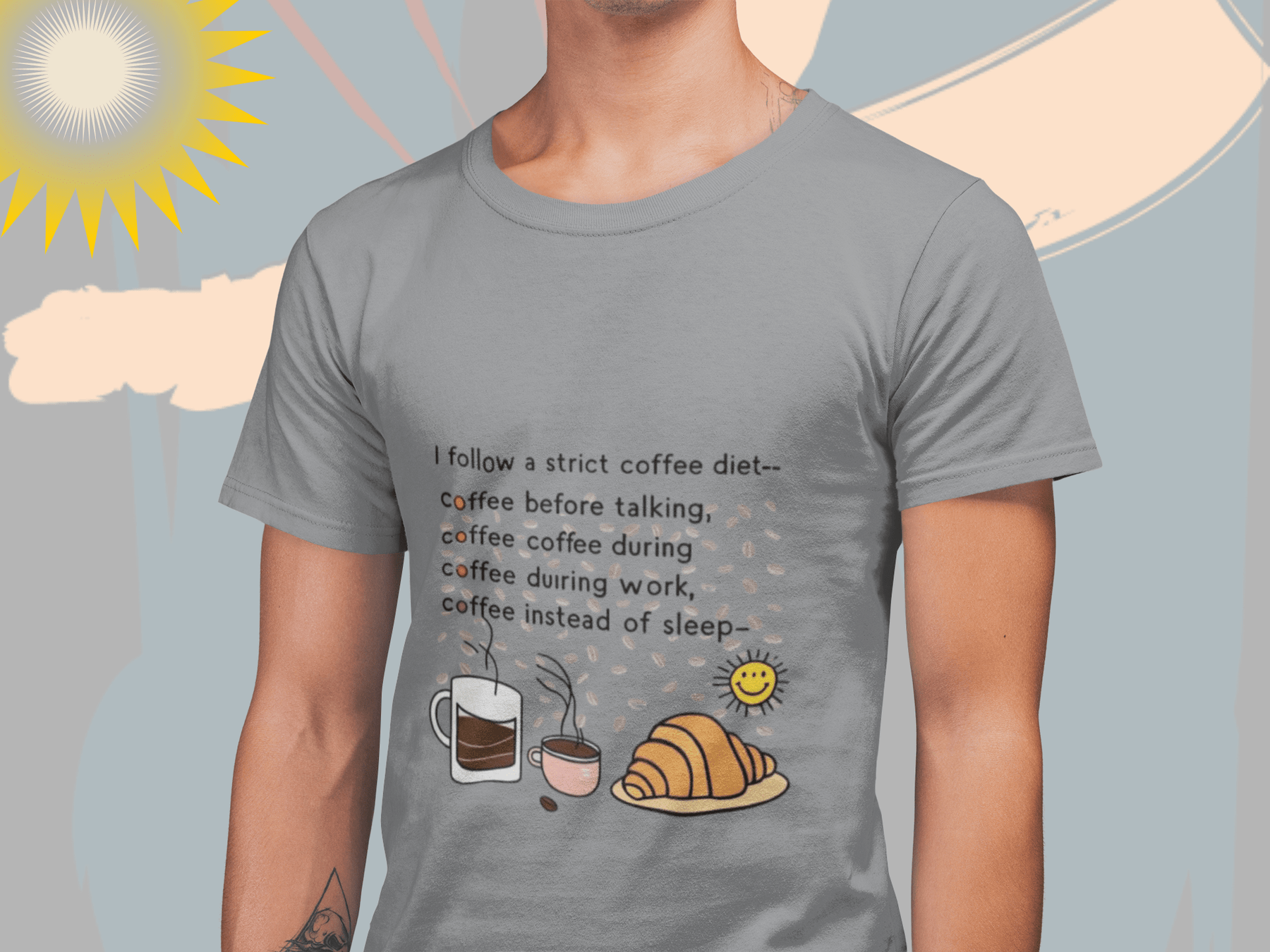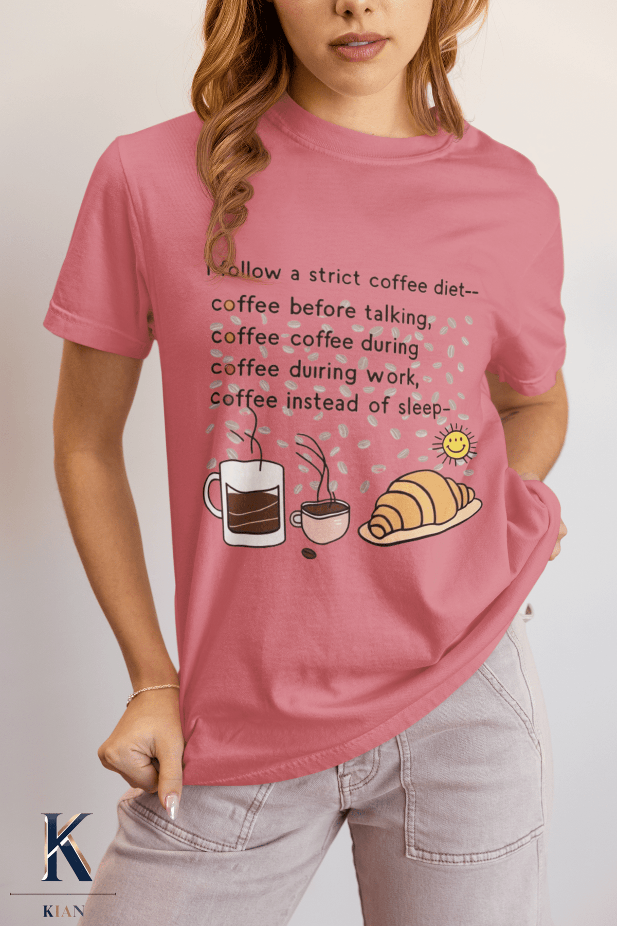 If your day doesn’t start until your first sip of coffee, this shirt was made for you! Our “Strict Coffee Diet” T-Shirt is a playful way to show off your love for caffeine in style.
