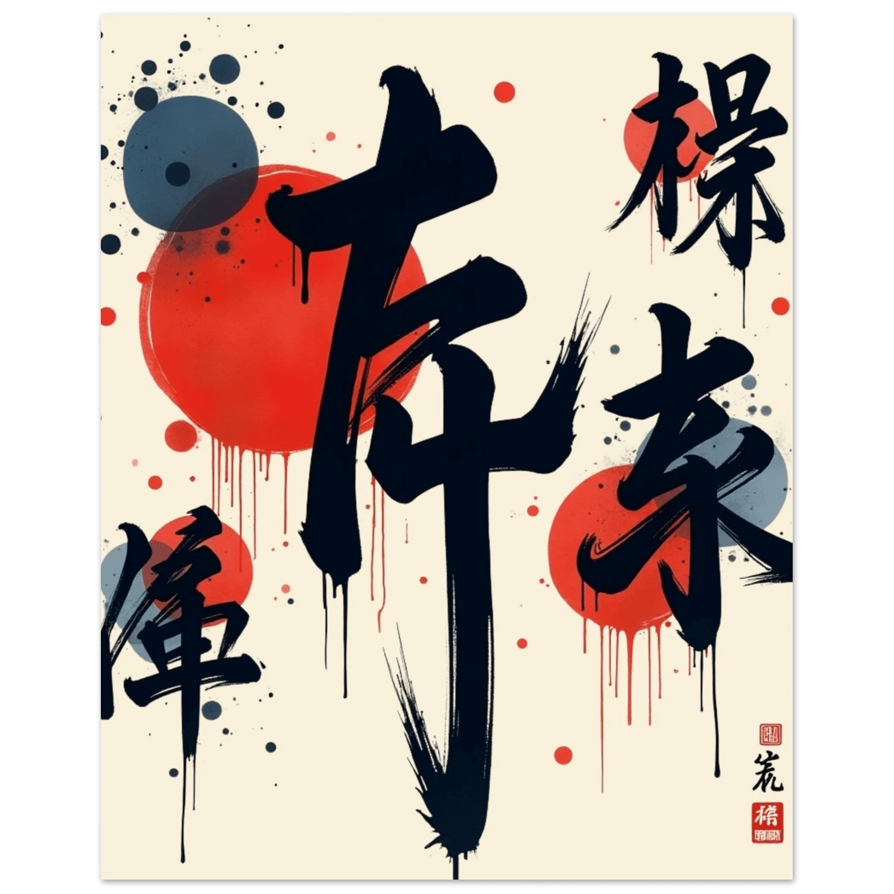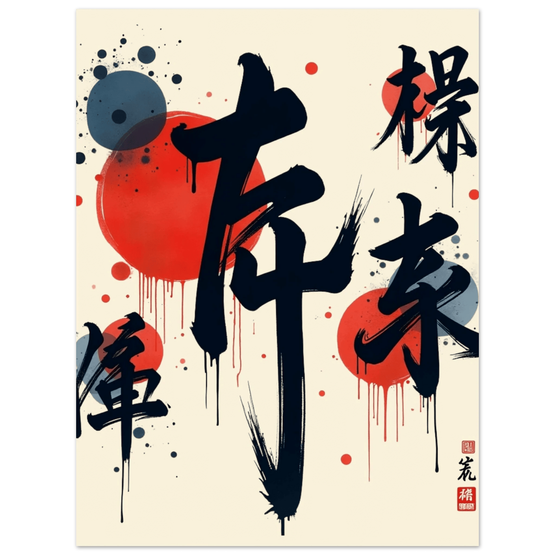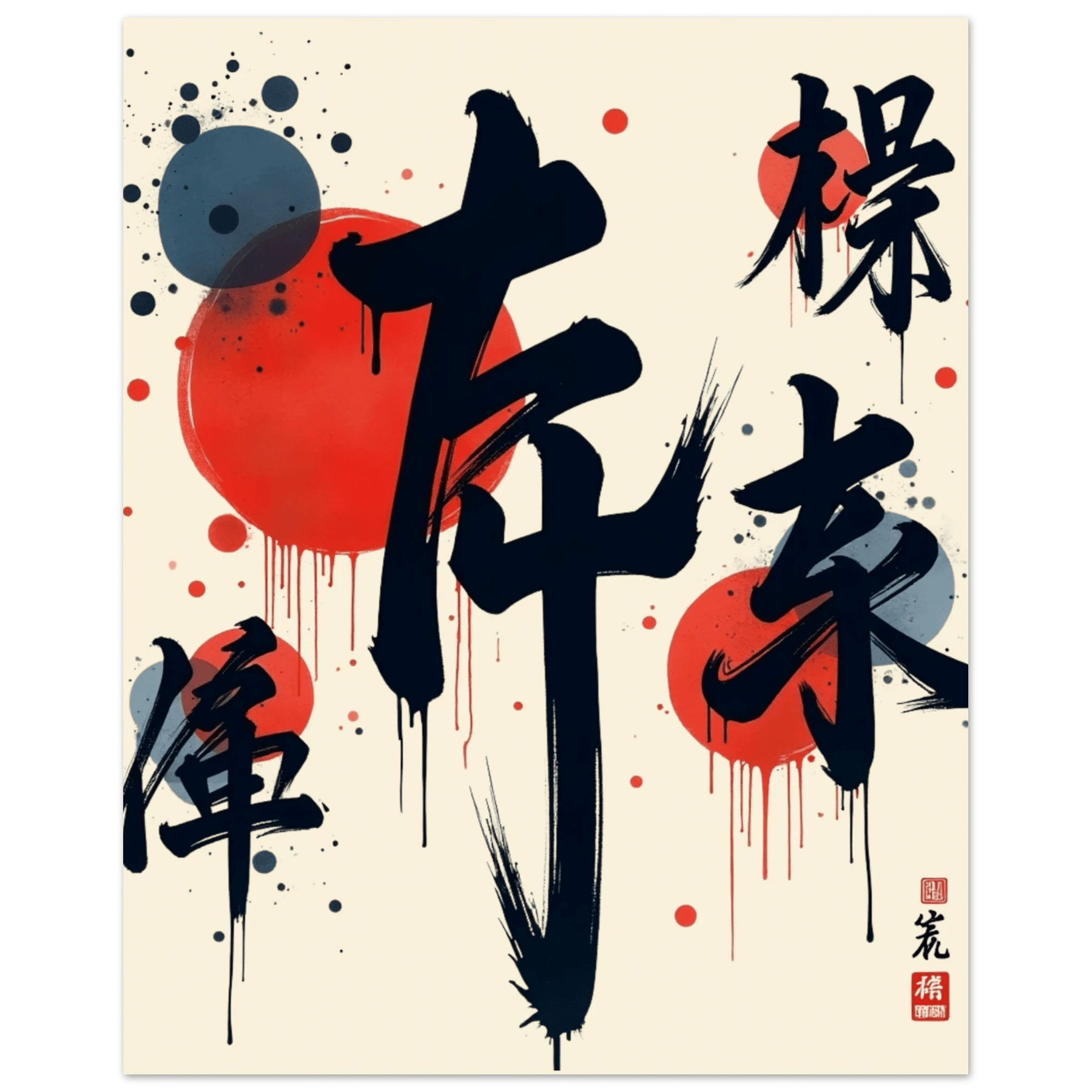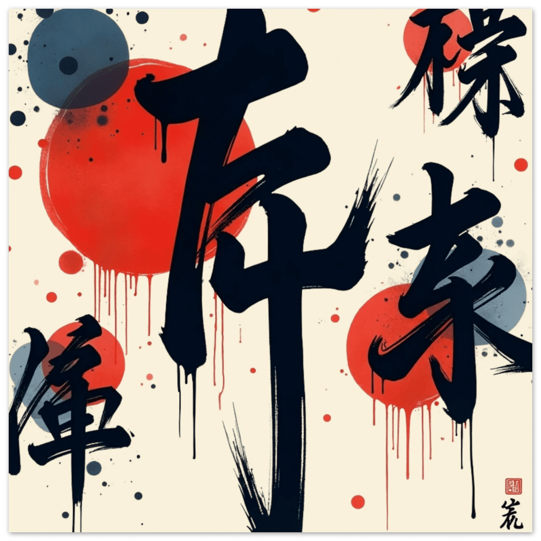 Introducing a stunning piece that captures the essence of Japanese calligraphy (書道 / shodō) through a modern expressionist lens. Our Calligraphy Meets Expressionism Poster transforms traditional artistry into a vivid portrayal of emotion, where each character bursts forth like a brushstroke meticulously crafted from a canvas of passion.