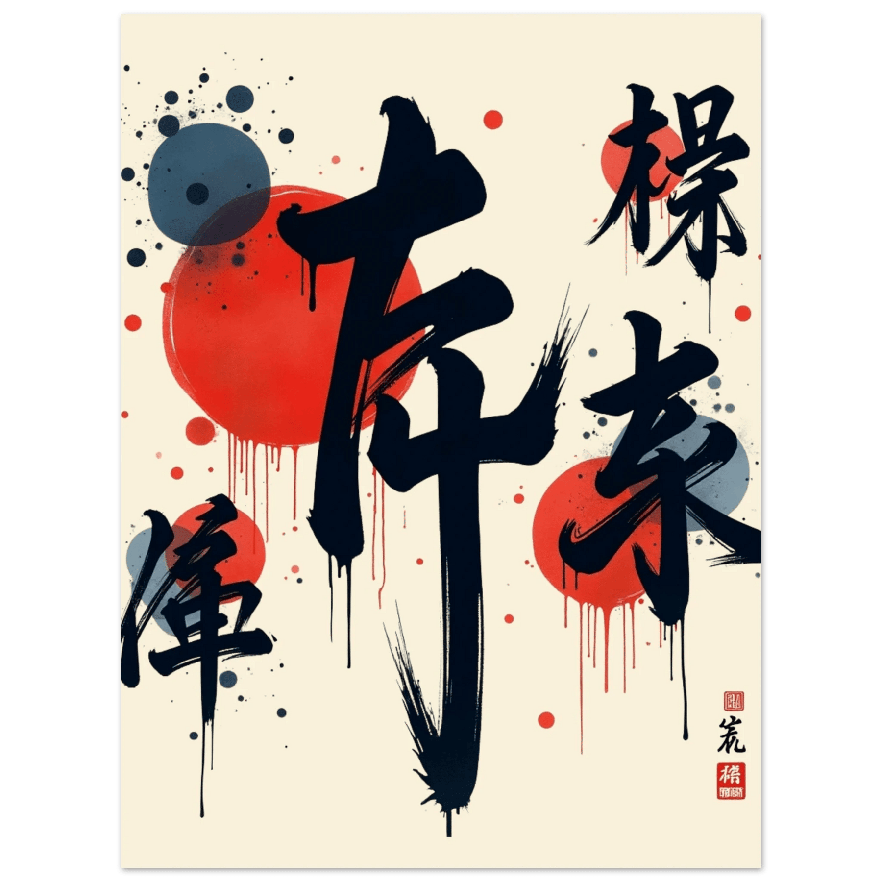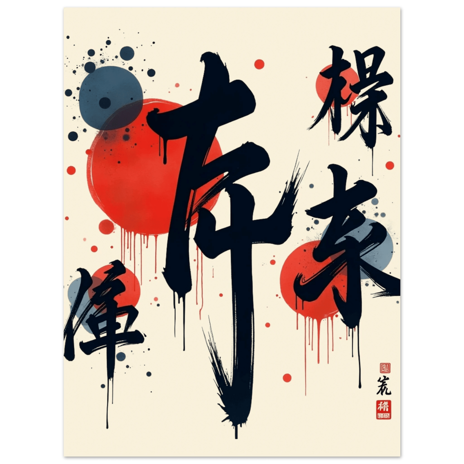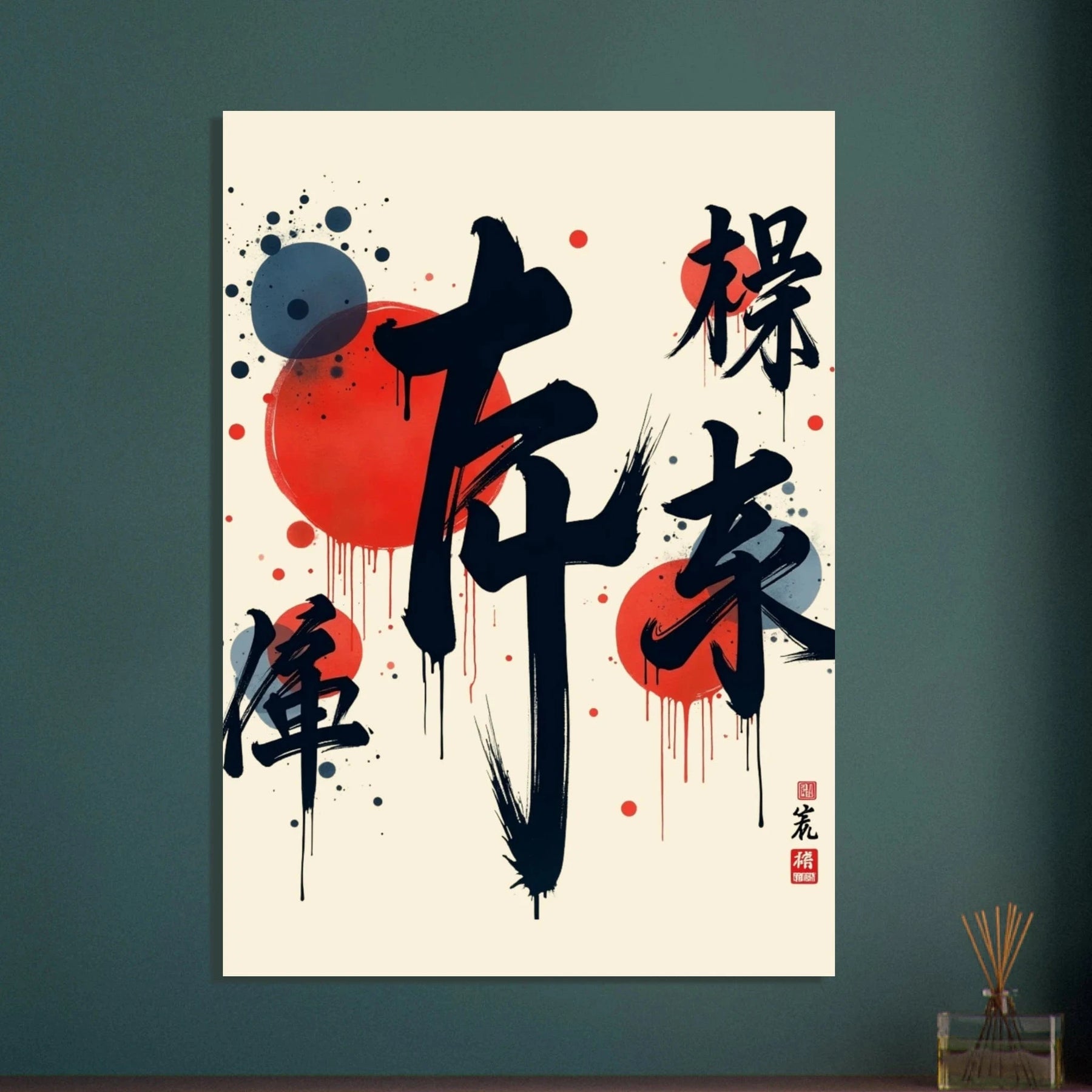 Introducing a stunning piece that captures the essence of Japanese calligraphy (書道 / shodō) through a modern expressionist lens. Our Calligraphy Meets Expressionism Poster transforms traditional artistry into a vivid portrayal of emotion, where each character bursts forth like a brushstroke meticulously crafted from a canvas of passion.