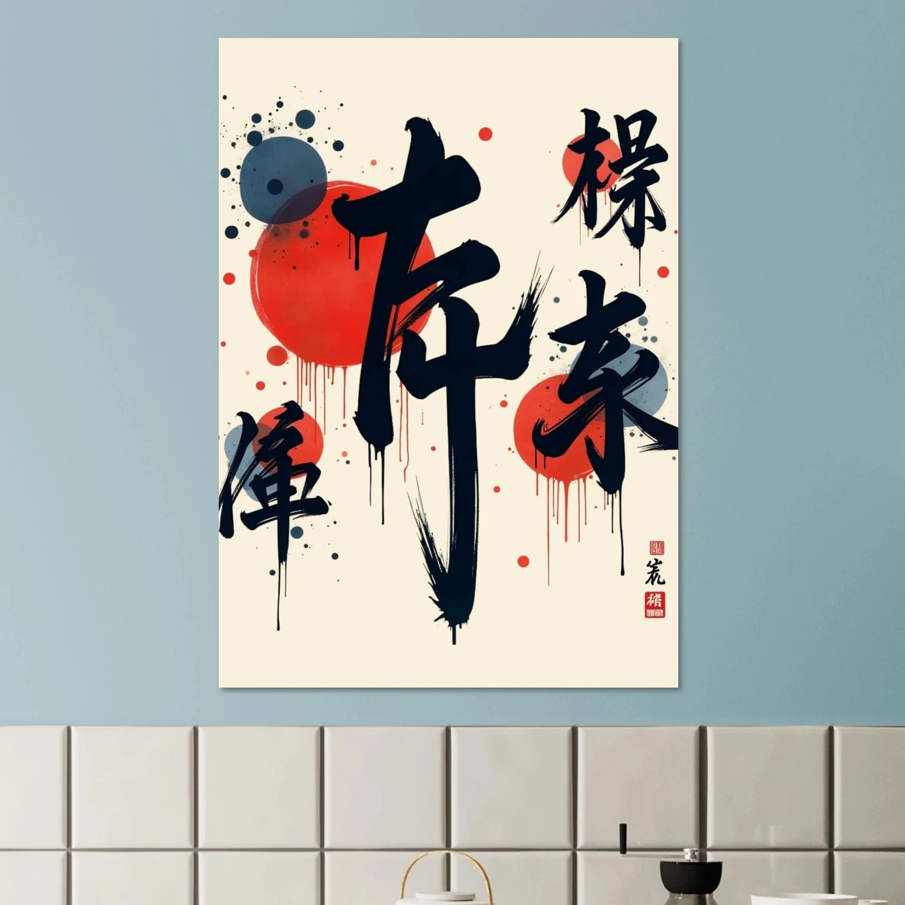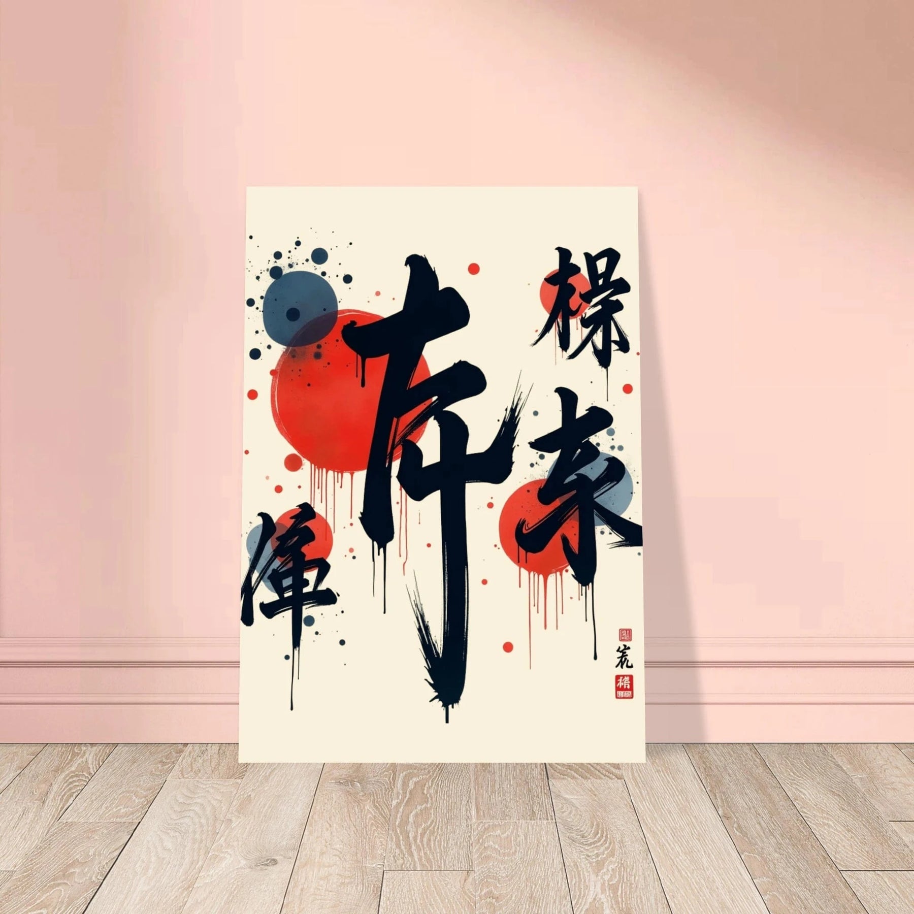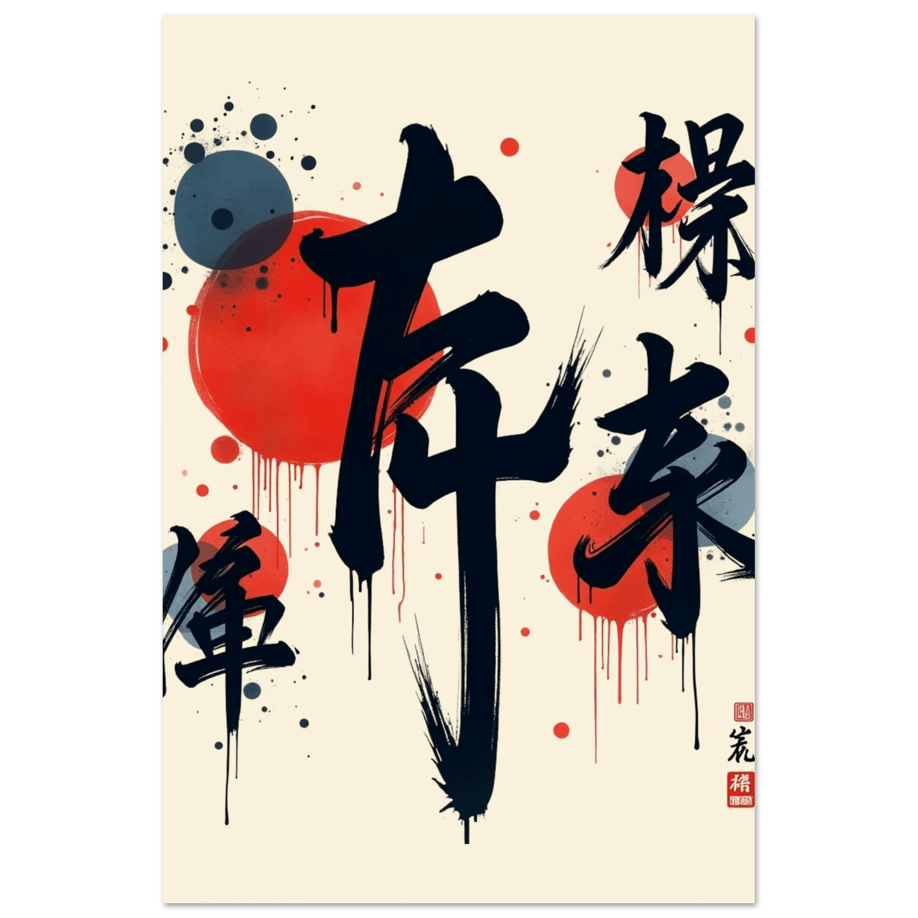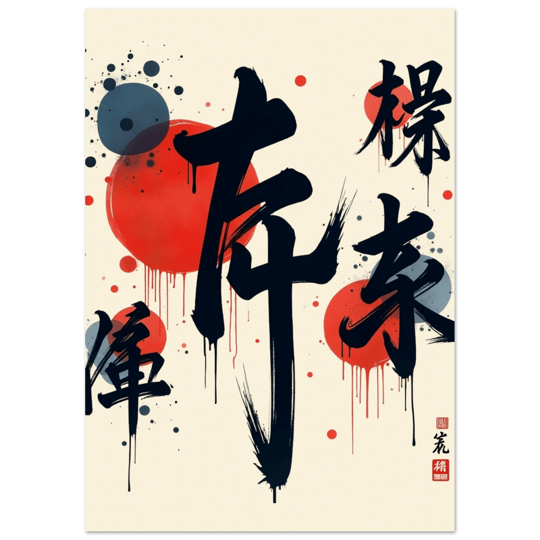Introducing a stunning piece that captures the essence of Japanese calligraphy (書道 / shodō) through a modern expressionist lens. Our Calligraphy Meets Expressionism Poster transforms traditional artistry into a vivid portrayal of emotion, where each character bursts forth like a brushstroke meticulously crafted from a canvas of passion.