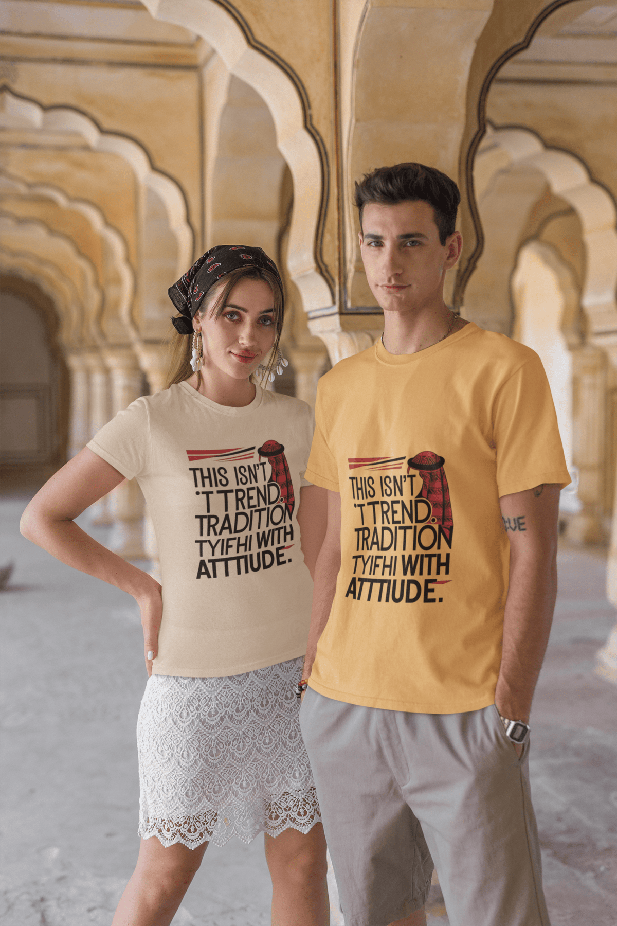 This shirt is not just clothing; it’s a declaration. With the powerful statement: “This isn’t a trend. It’s tradition with attitude.”, it stands firm against cultural appropriation while empowering wearers to embrace their heritage confidently. The geometric keffiyeh motifs in traditional black and white (or red and white) provide a striking visual that emphasizes both symmetry and cultural symbolism.