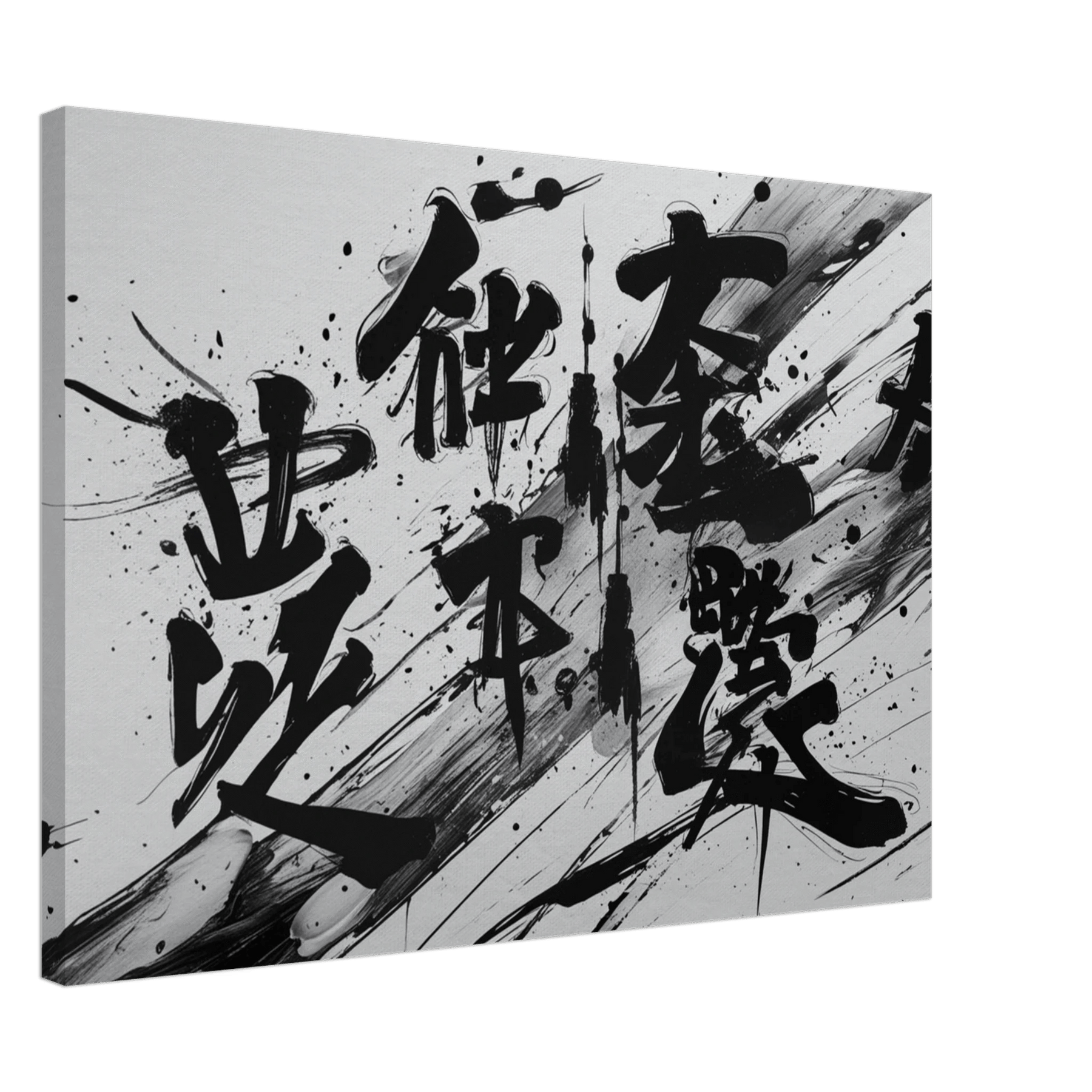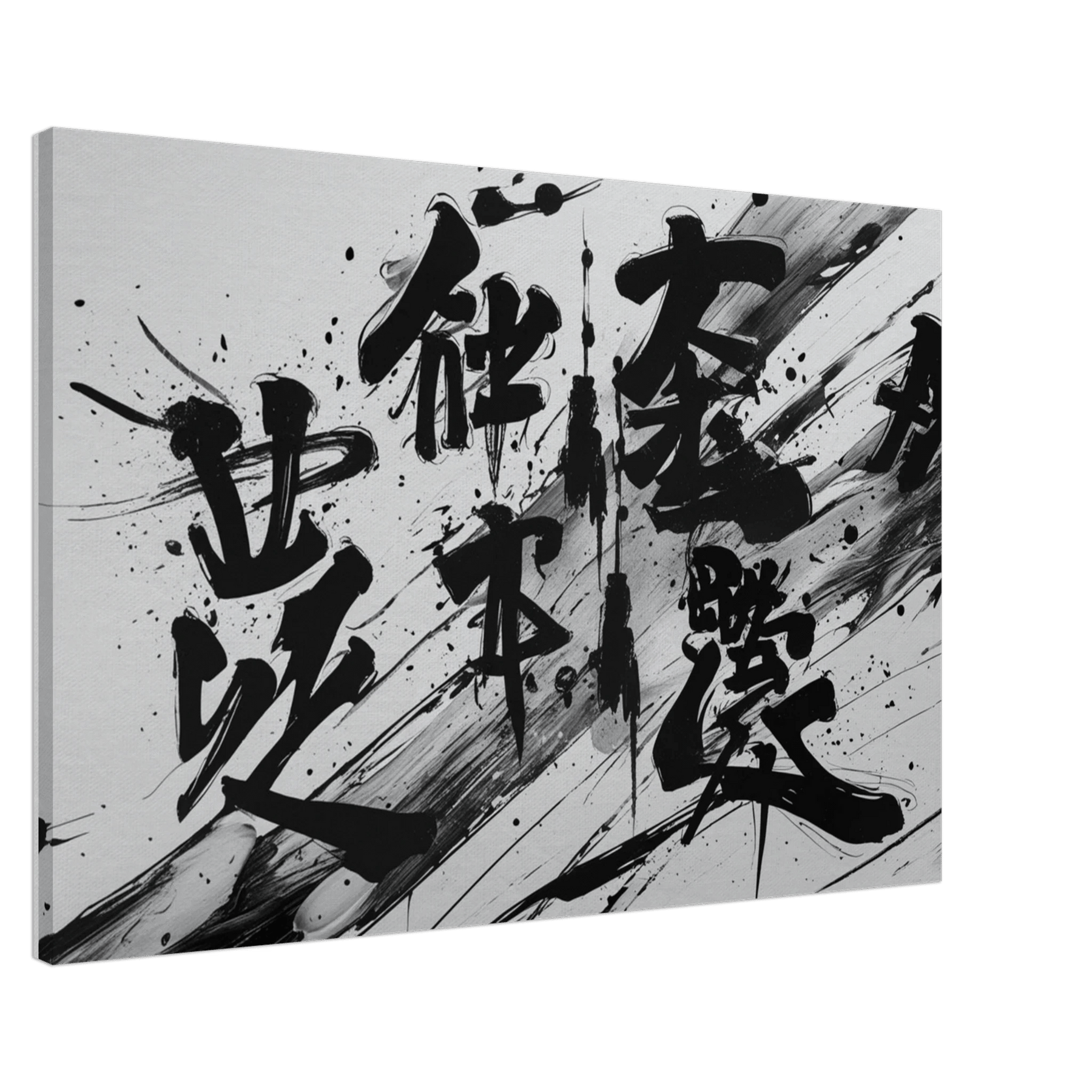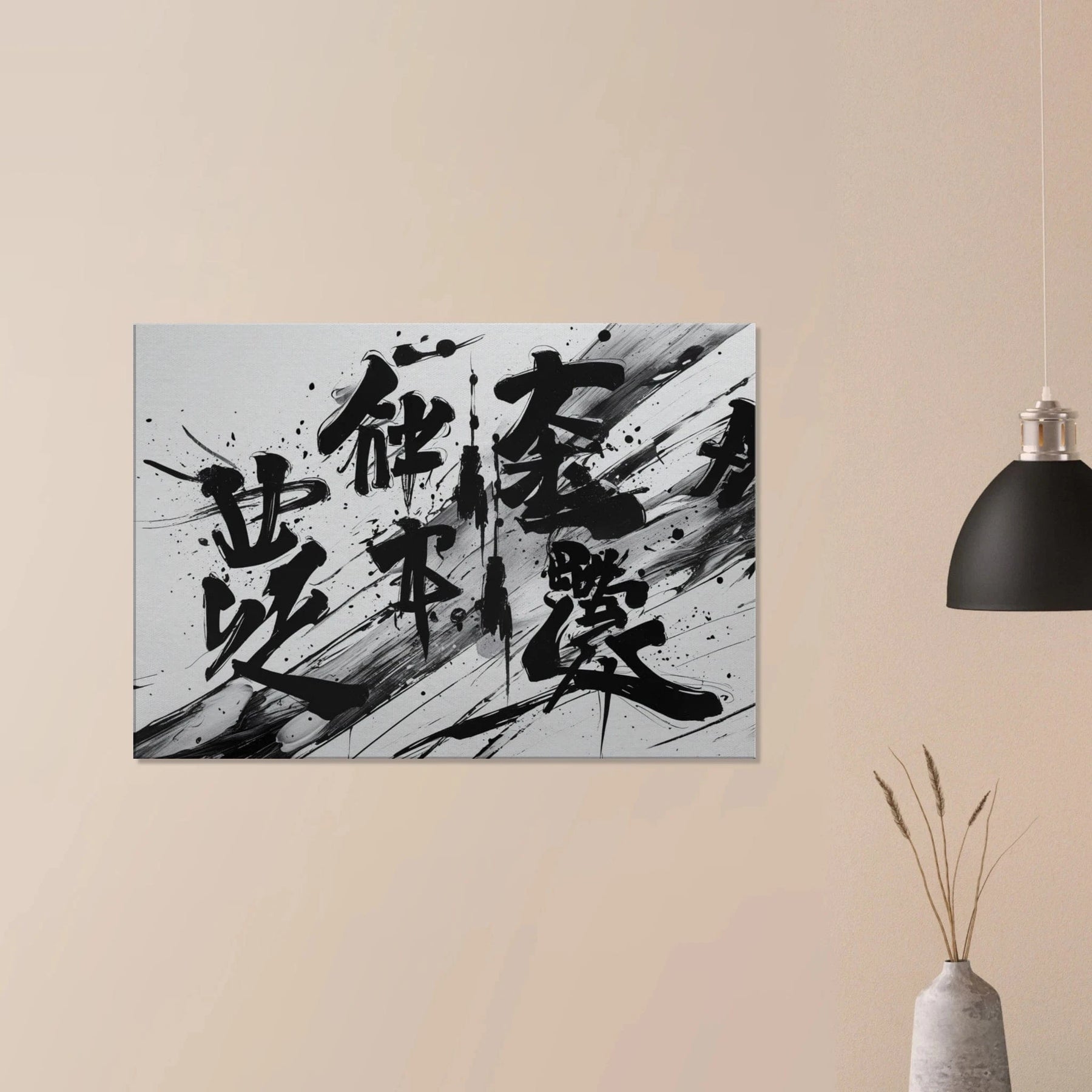 Transform your living space with our stunning canvas print that beautifully fuses the timeless elegance of Japanese calligraphy (書道 / shodō) with the dynamic energy of modern expressionism. This piece is a striking tribute to the power of the written form, where each kanji emerges vibrantly, reflecting deep emotion and artistic intensity.