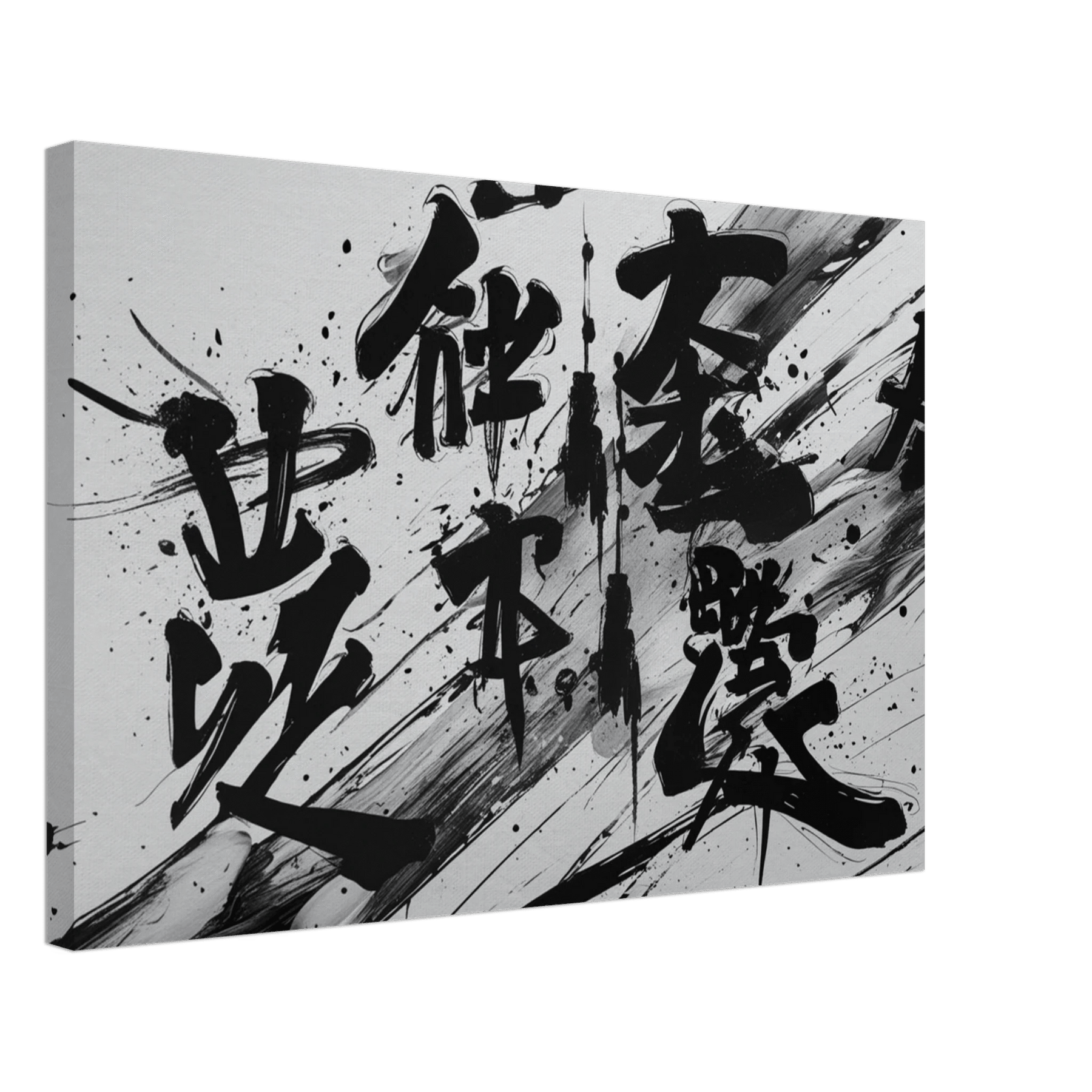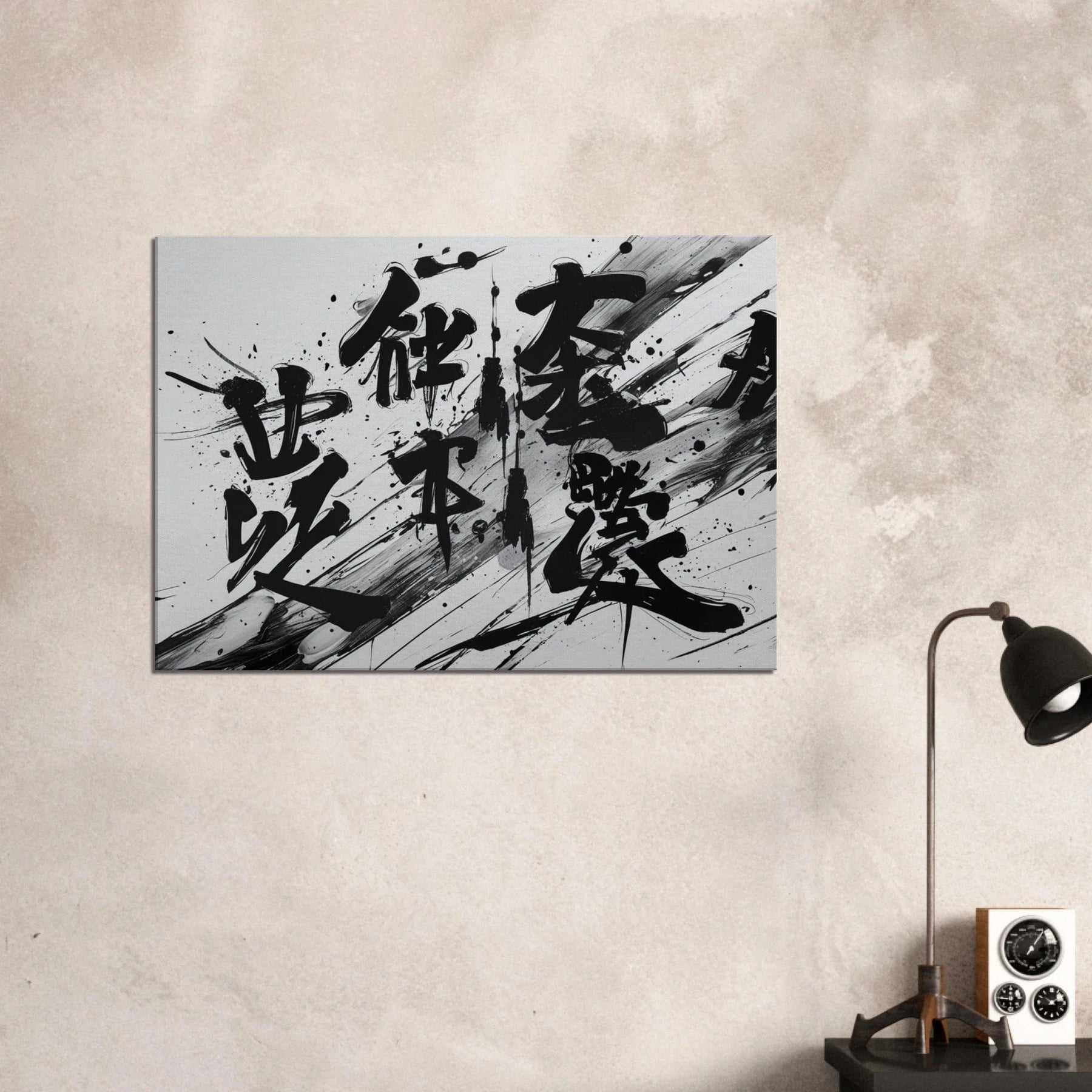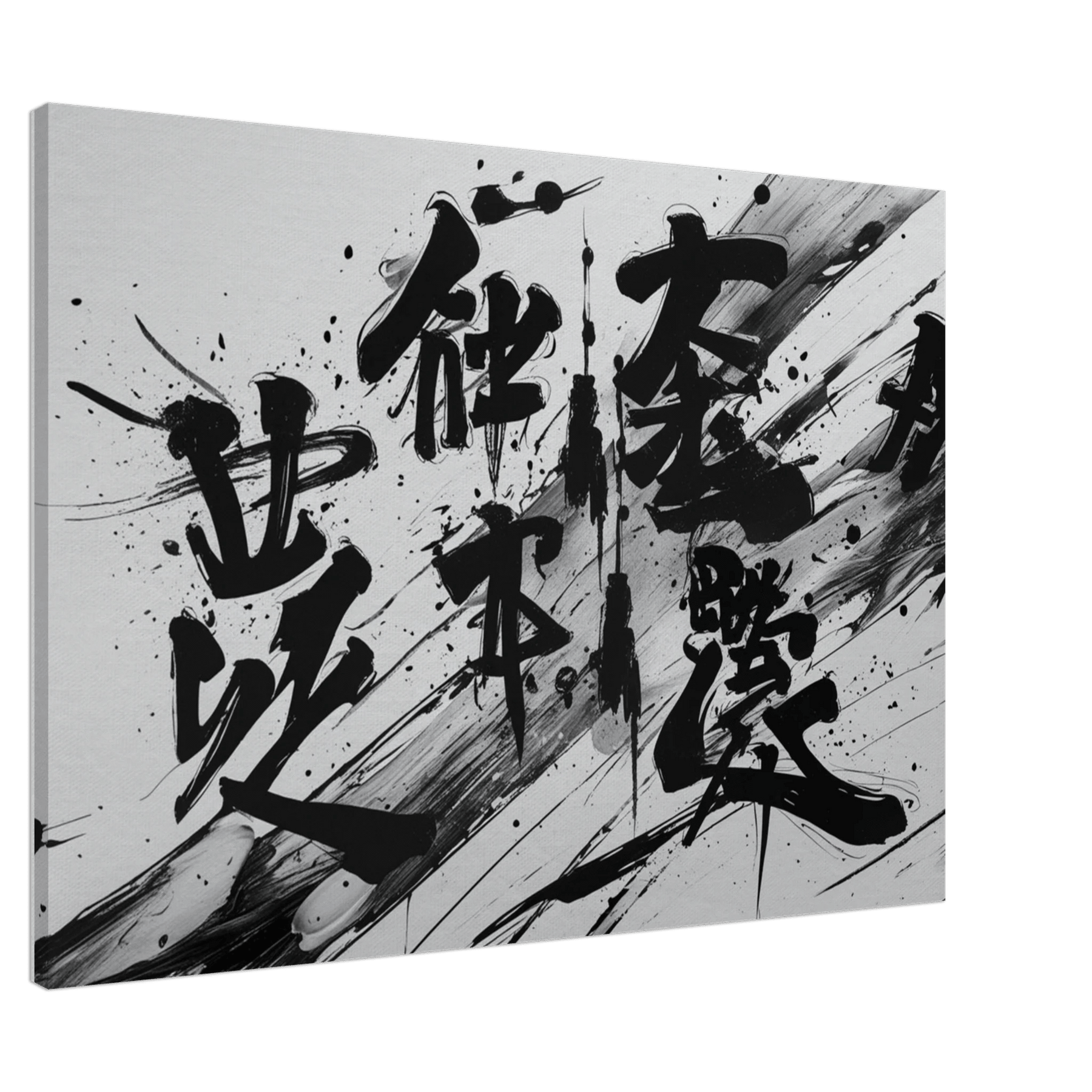 Transform your living space with our stunning canvas print that beautifully fuses the timeless elegance of Japanese calligraphy (書道 / shodō) with the dynamic energy of modern expressionism. This piece is a striking tribute to the power of the written form, where each kanji emerges vibrantly, reflecting deep emotion and artistic intensity.