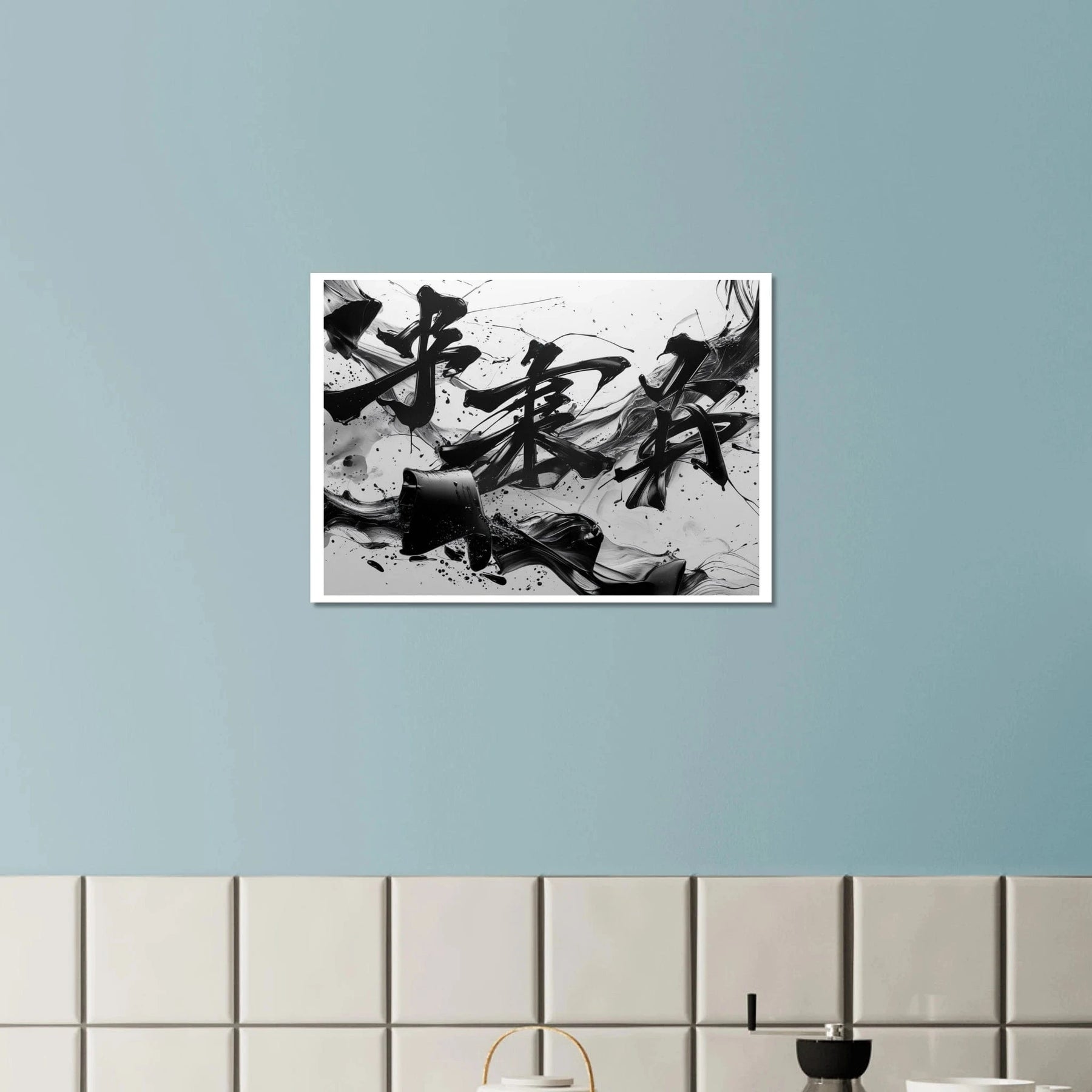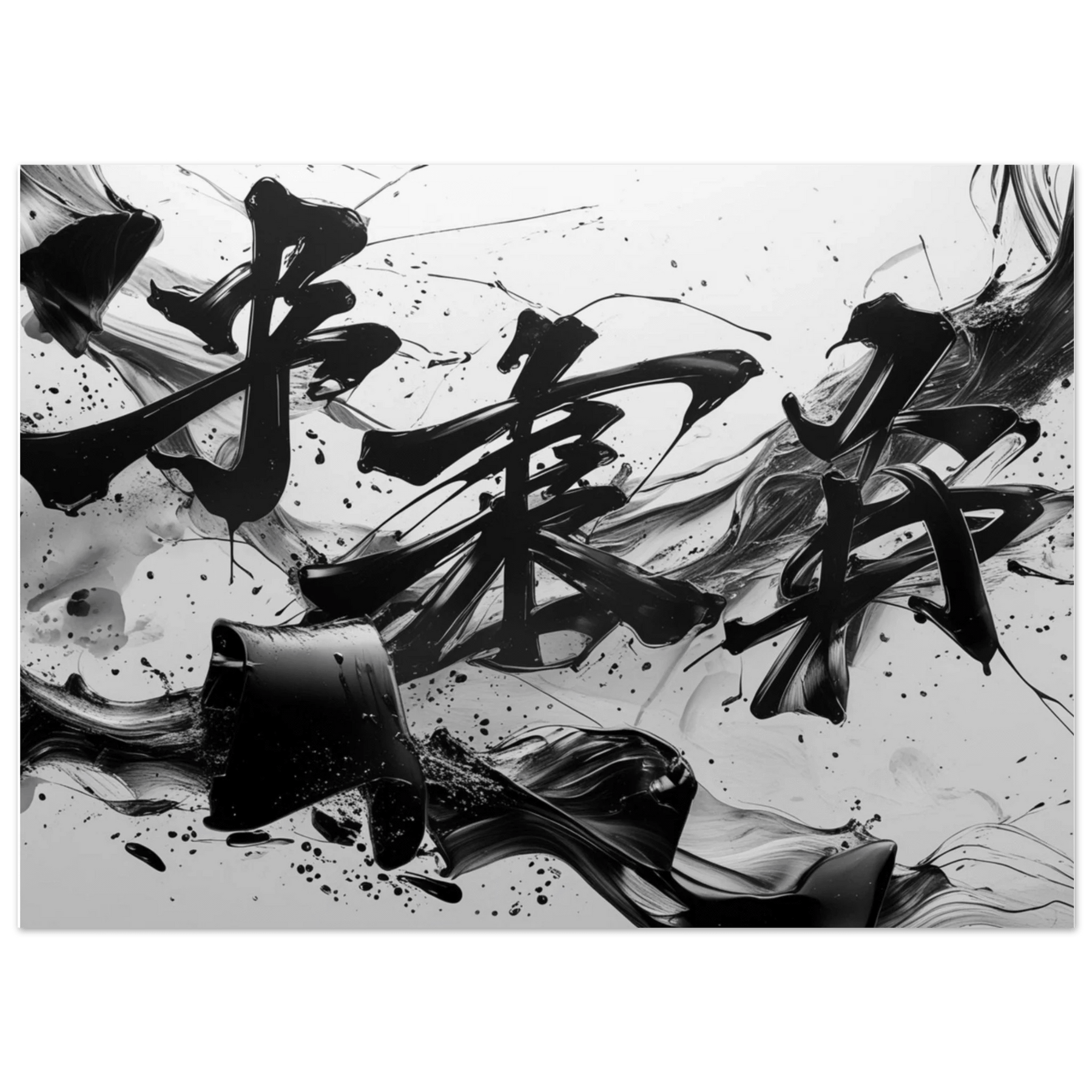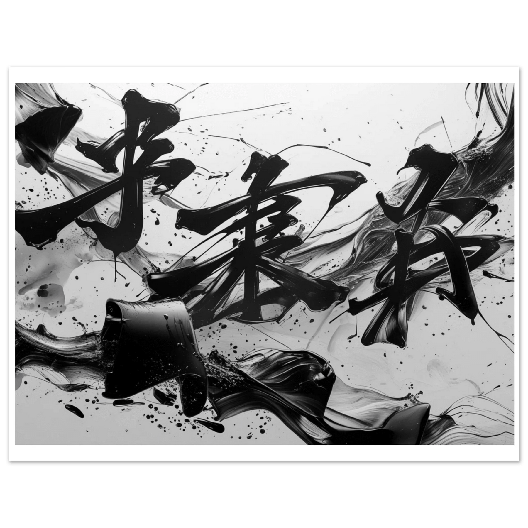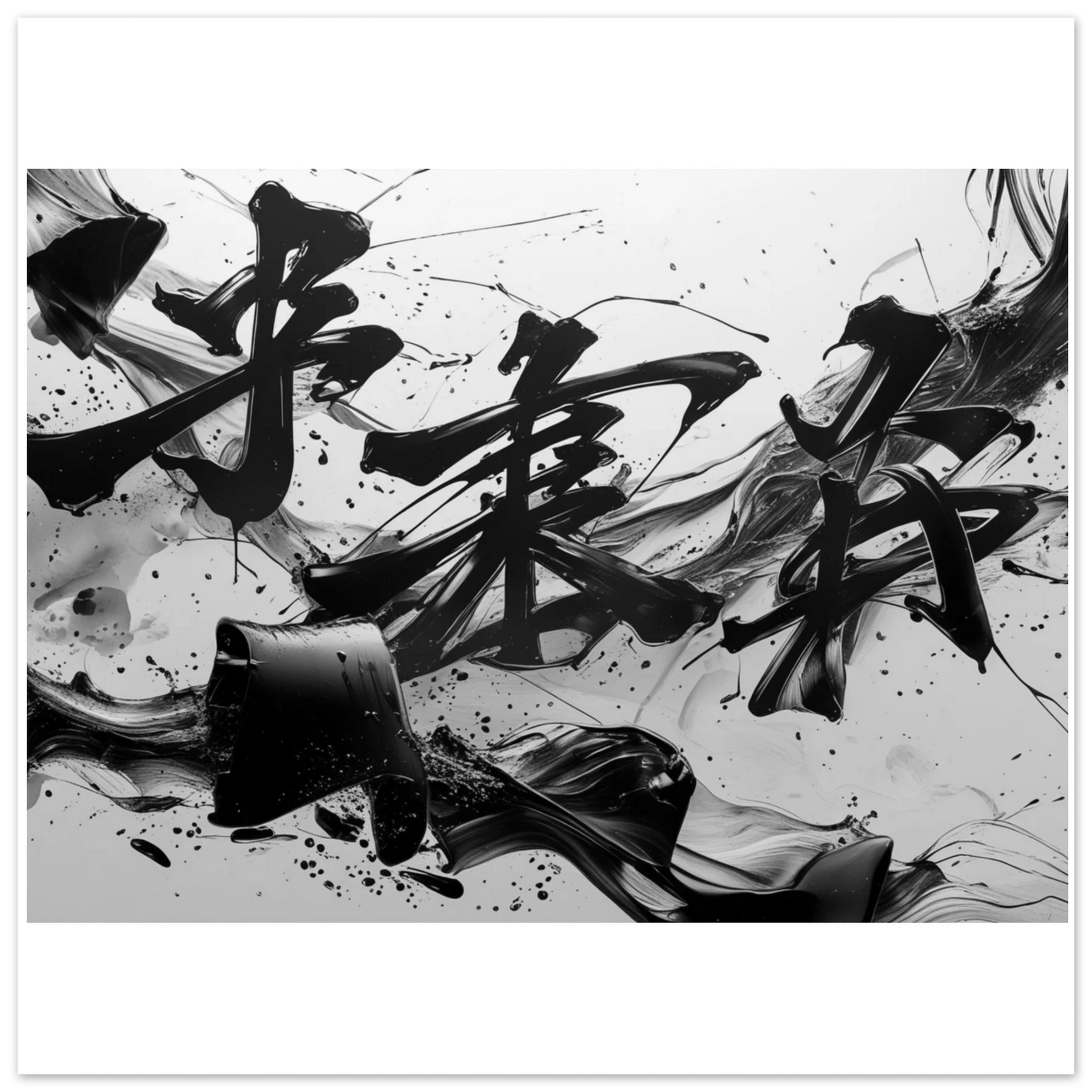 Immerse yourself in the dynamic fusion of tradition and modernity with our Japanese Calligraphy Inspired Poster. This striking artwork serves as a tribute to the profound power of written form, blending the art of shodō with contemporary expressionism. Each character leaps from the surface, bursting forth like an emotional brushstroke, transforming your walls into a canvas of vibrant expression.