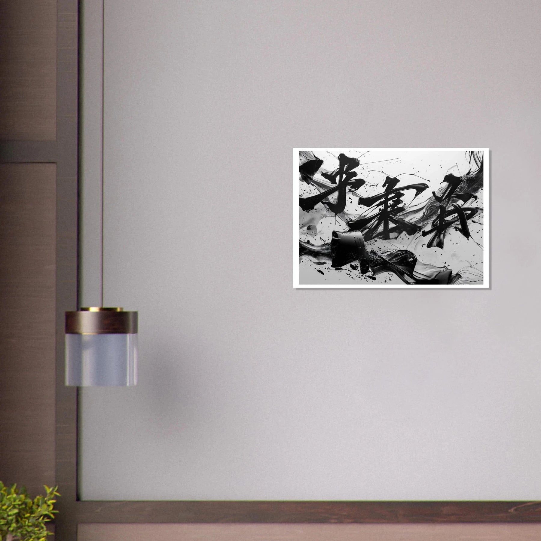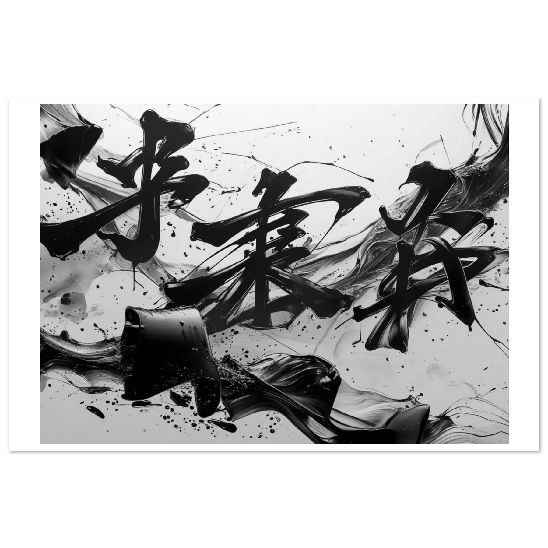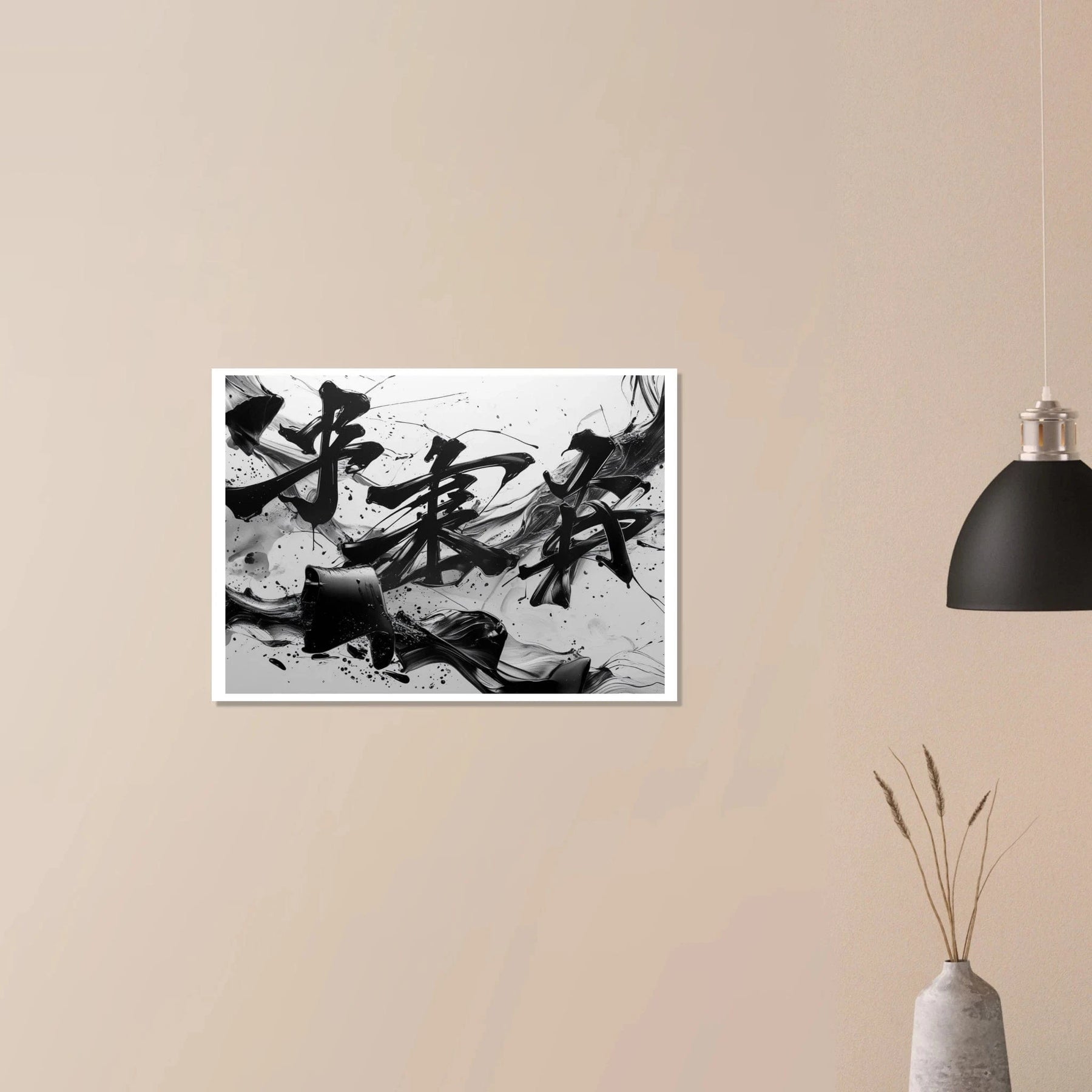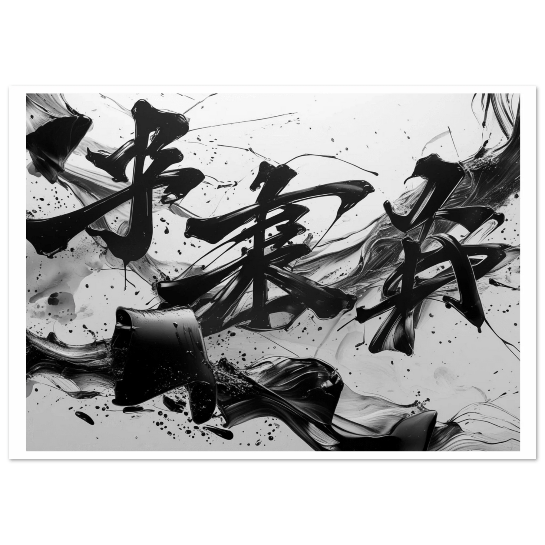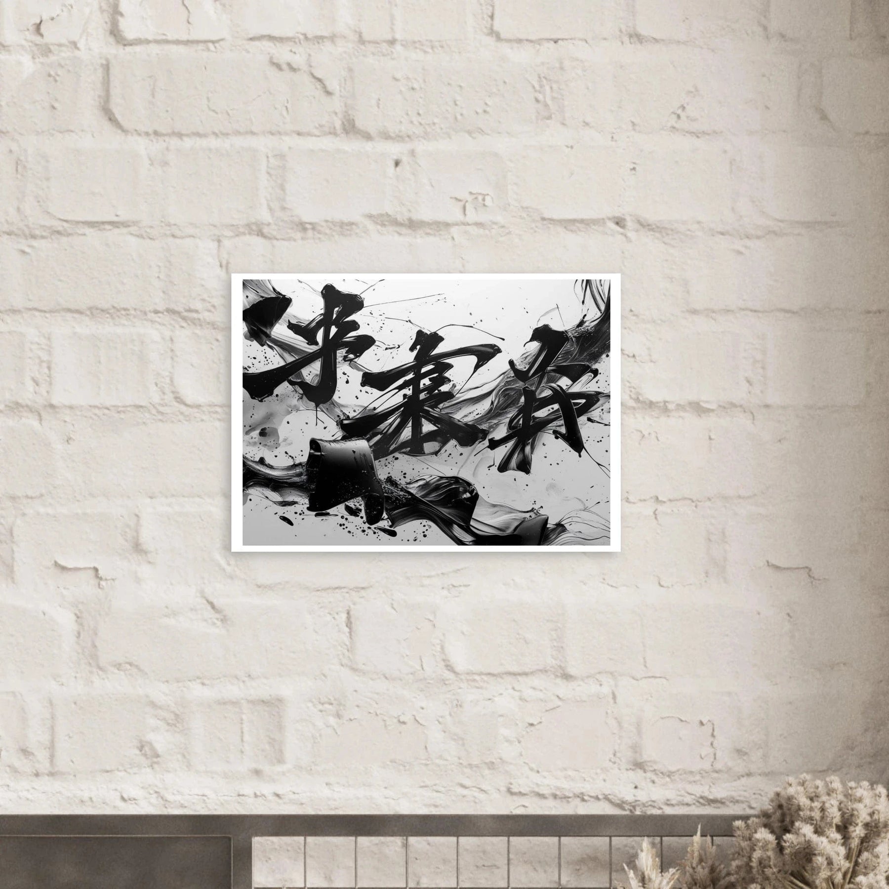 Immerse yourself in the dynamic fusion of tradition and modernity with our Japanese Calligraphy Inspired Poster. This striking artwork serves as a tribute to the profound power of written form, blending the art of shodō with contemporary expressionism. Each character leaps from the surface, bursting forth like an emotional brushstroke, transforming your walls into a canvas of vibrant expression.