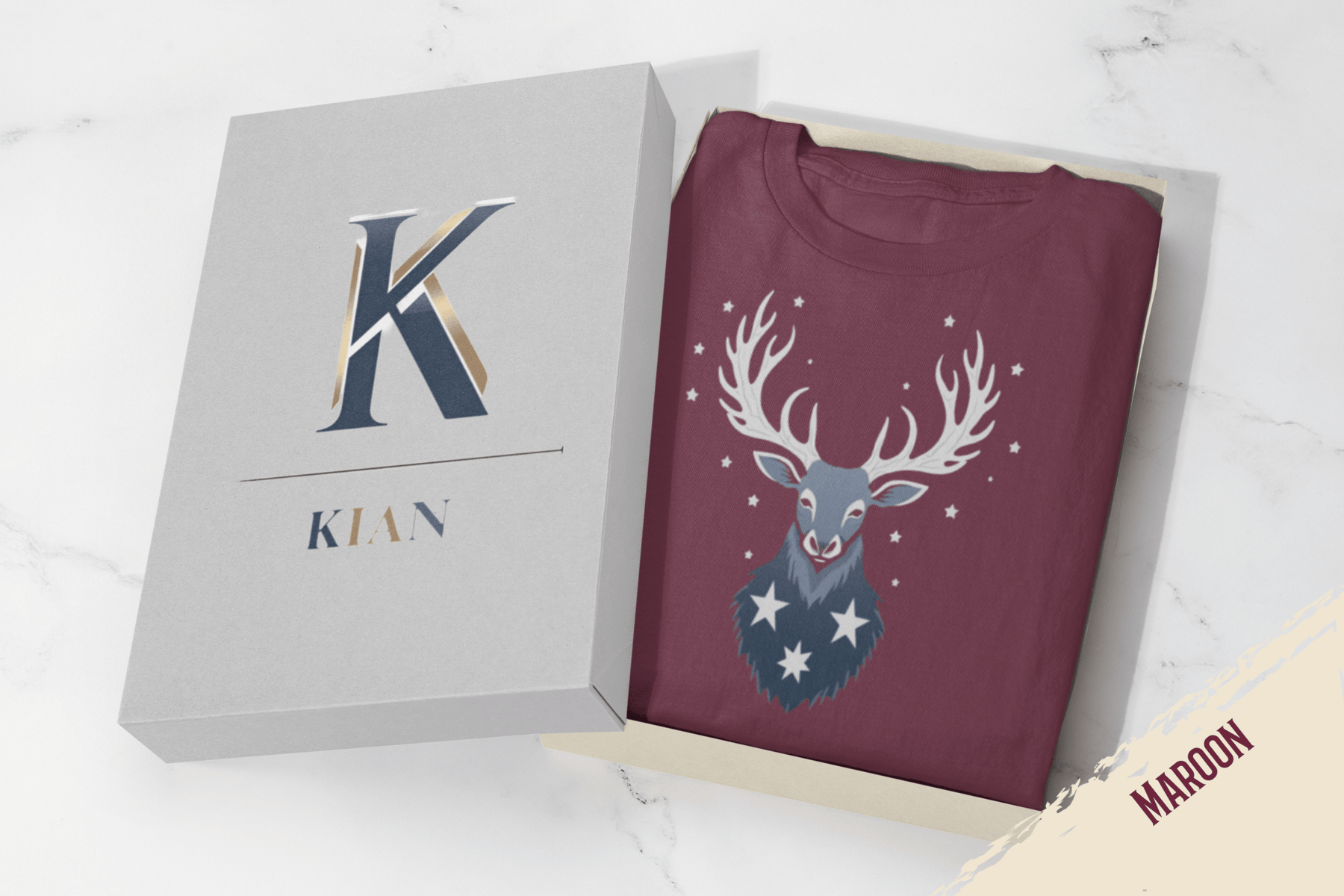 Featuring a beautifully illustrated deer crowned with majestic antlers and surrounded by twinkling stars, this design is perfect for nature lovers, dreamers, and anyone who feels inspired by the night sky.