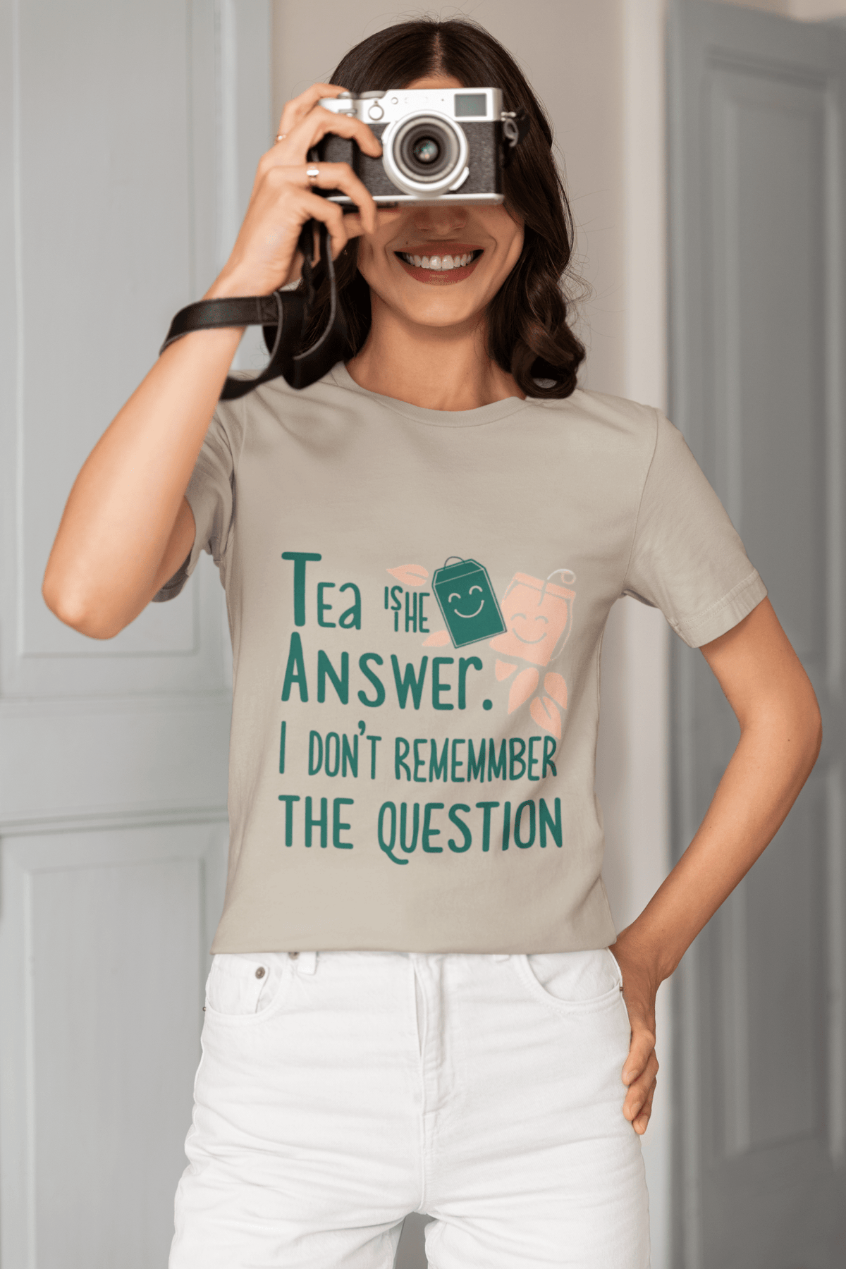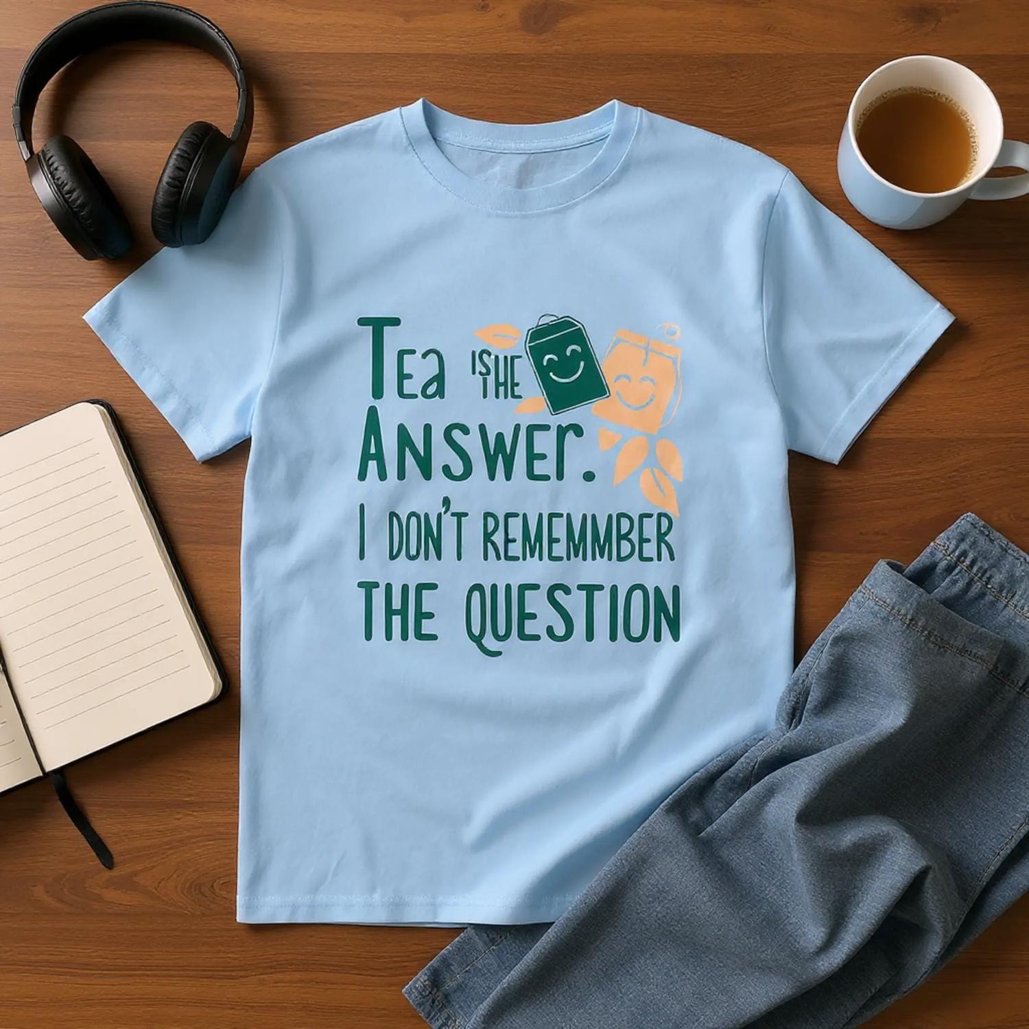 This lighthearted T-shirt is perfect for every tea enthusiast who knows that a good cup makes everything better—even if you’ve forgotten what you were worrying about in the first place!